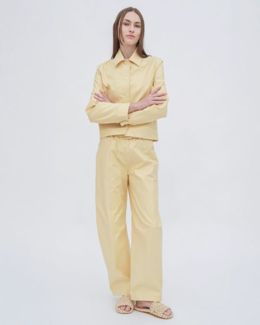 The Stretch Cotton Shantung is a crisp and structured cotton blend that offers newfound ease and comfort to tailored styles. It offers wearability to Rosetta Getty’s signature pant silhouettes.