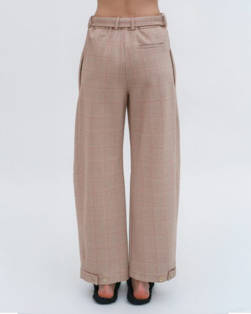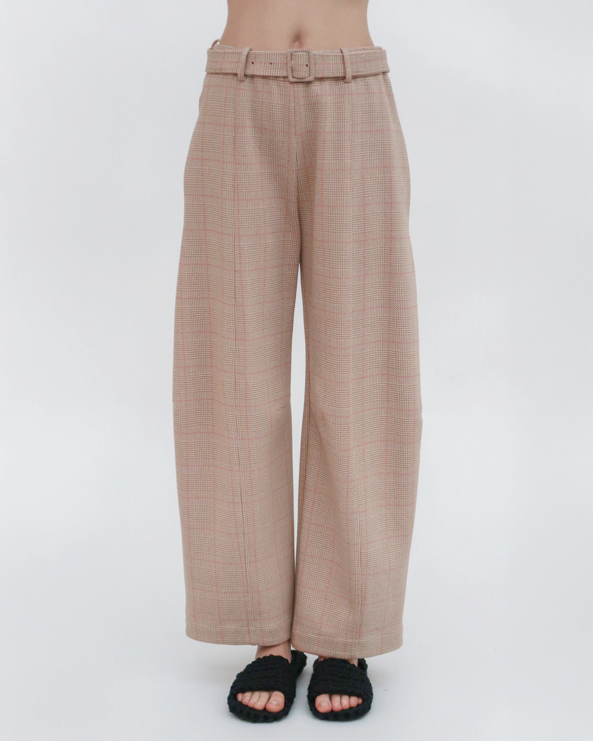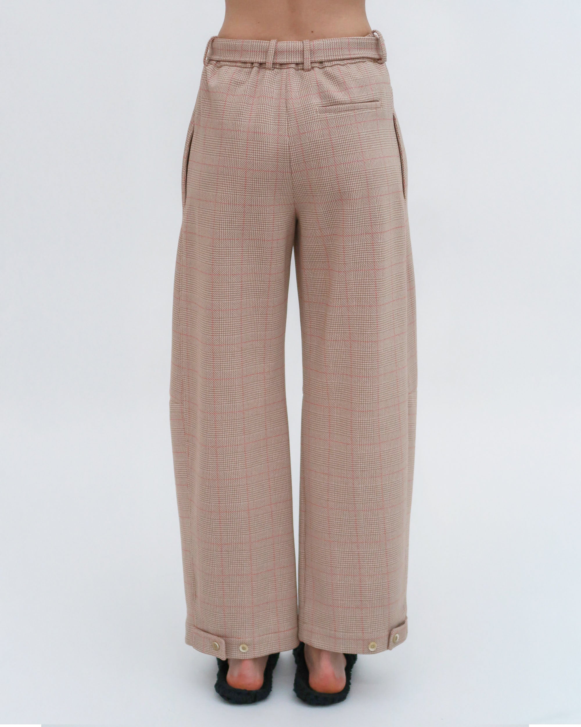 An update to a favorite shape from Resort 25, the Straight Taper Tab Pant features for the season in the classic Prince of Wales Plaid Interlock Jacquard. Designed with a self-belt at the waist, the flattering silhouette showcases refined tailored details and tiny darts at each knee.