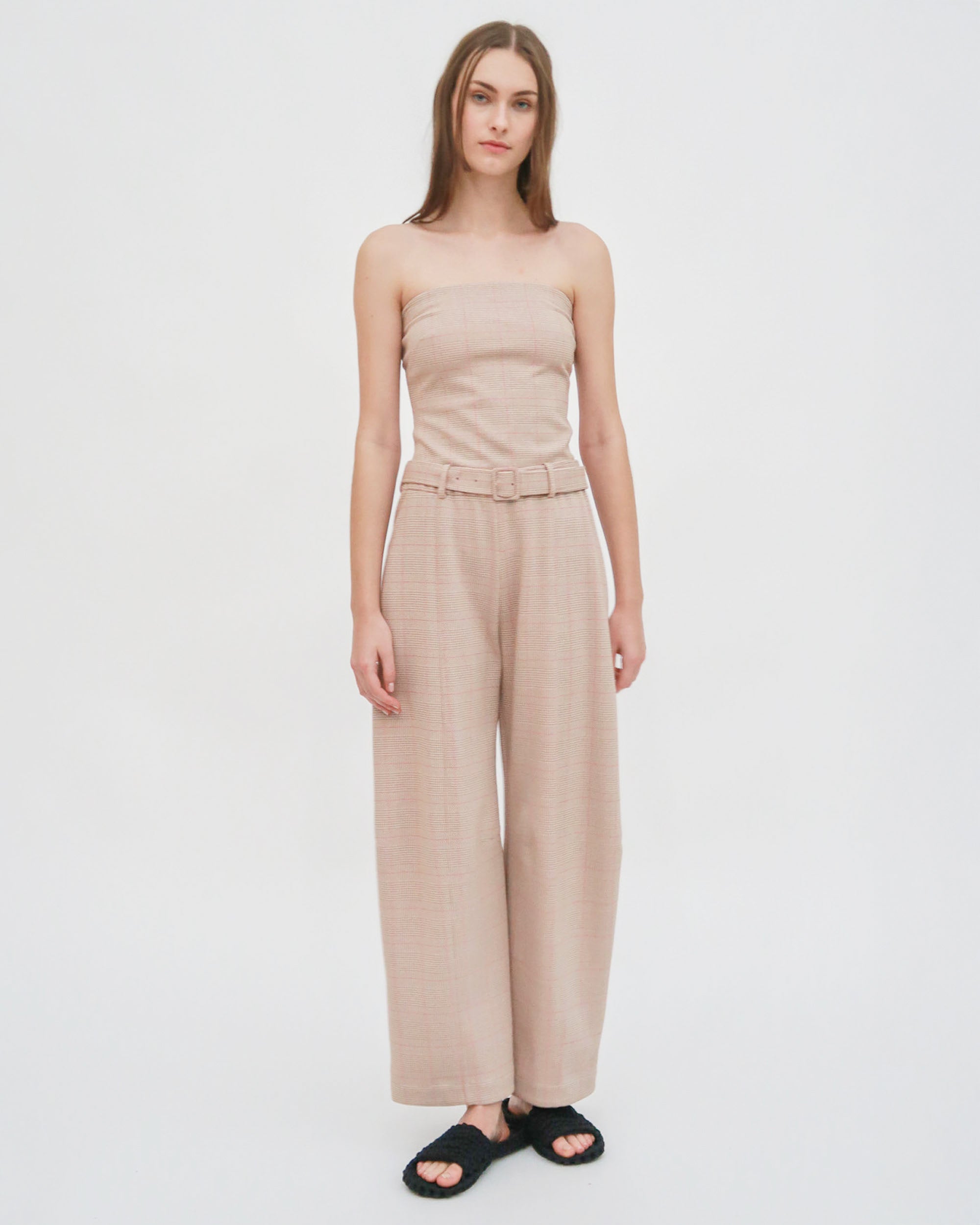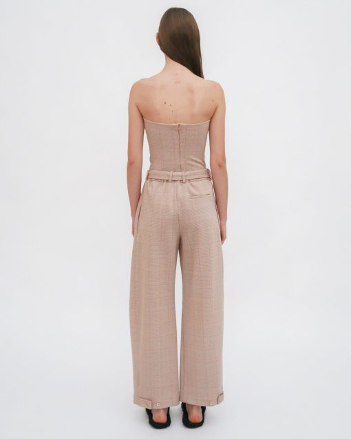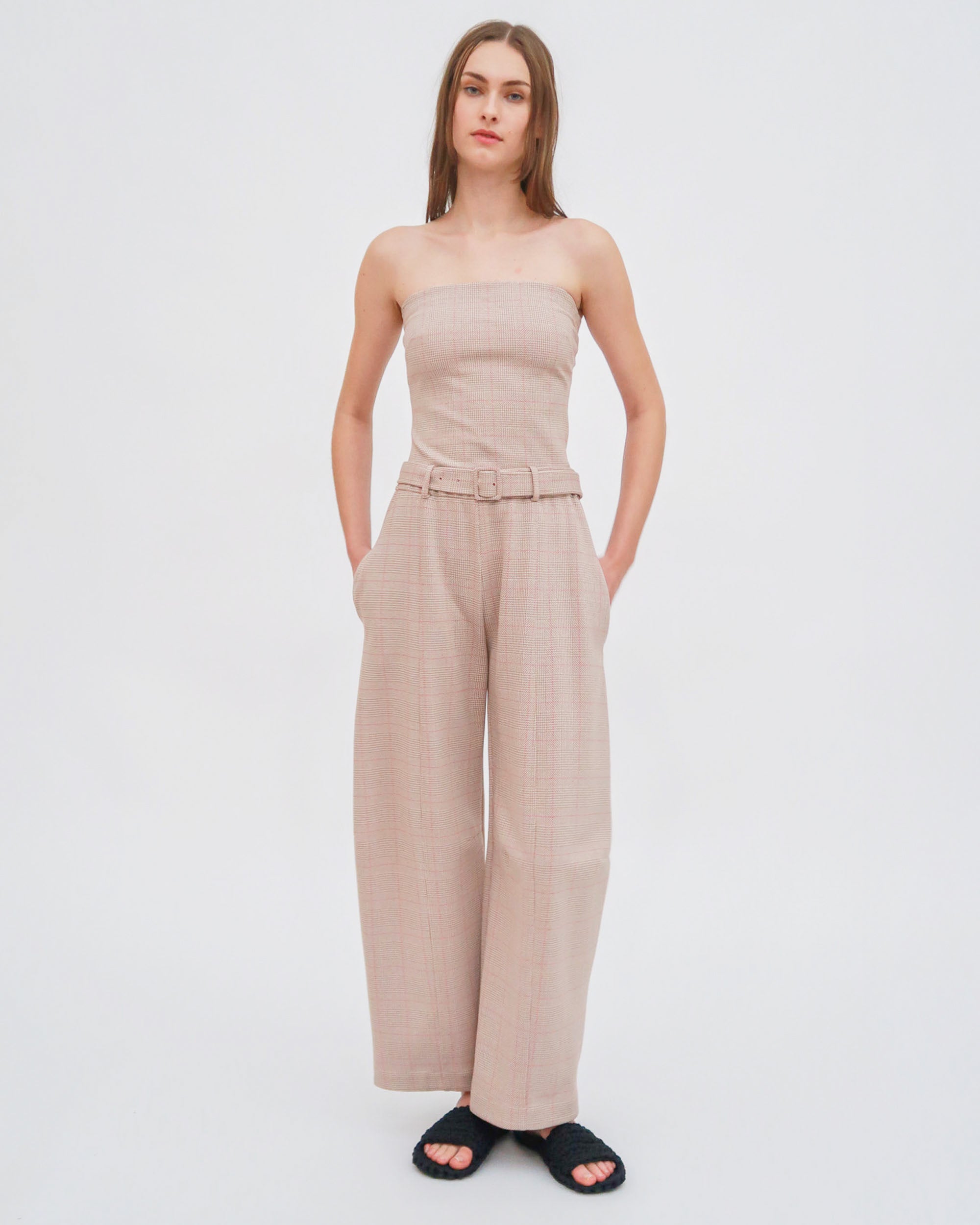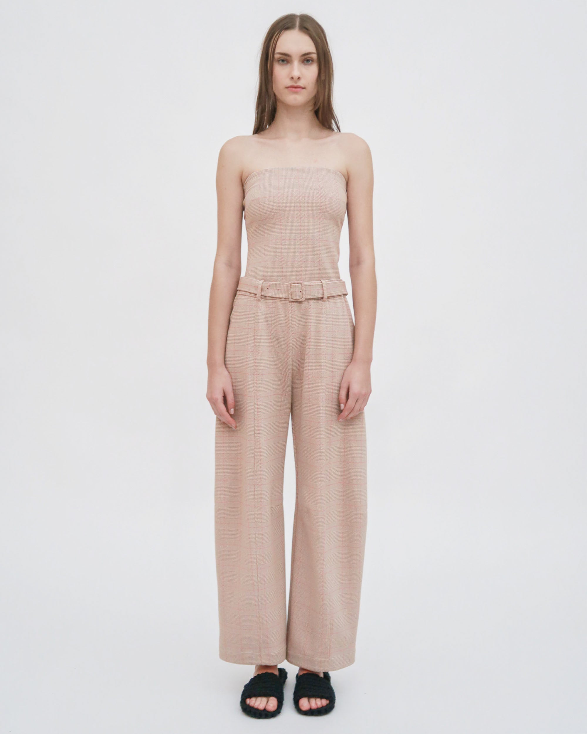 An update to a favorite shape from Resort 25, the Straight Taper Tab Pant features for the season in the classic Prince of Wales Plaid Interlock Jacquard. Designed with a self-belt at the waist, the flattering silhouette showcases refined tailored details and tiny darts at each knee.