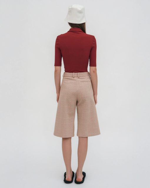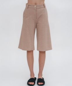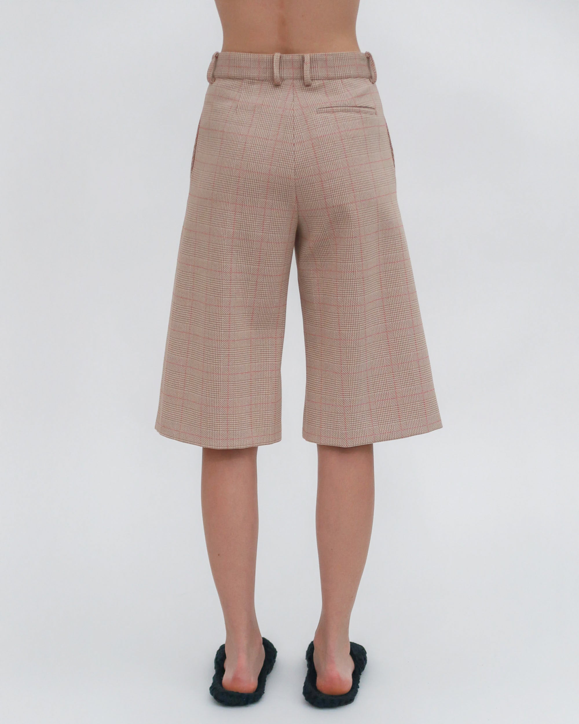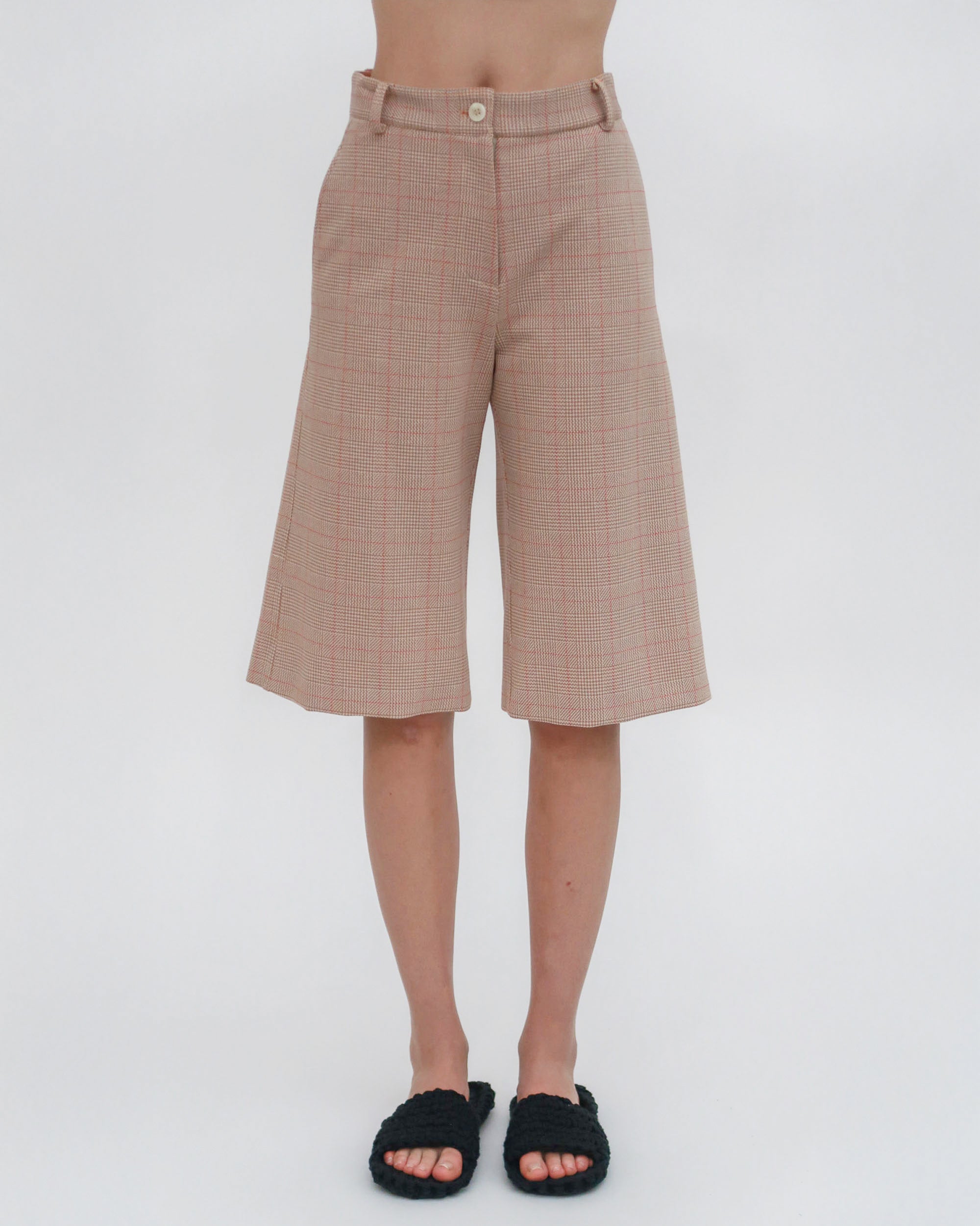 Offering a shorter length than our typical cropped pant silhouettes, the Bermuda Short features in Prince of Wales Plaid Interlock Jacquard as a stylish alternative. Topped with a polished waistband, the wide-leg style is designed to hit just below the knee with a slight flare hem.