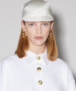 Updating Rosetta Getty’s signature hat silhouette, Pre-Fall 24’s Bucket Cap features a structured top with a short brim to create a cloche effect. Hinting at 1920’s styling and dressing, it features in the season’s exclusive Houndstooth Interlock Jacquard.