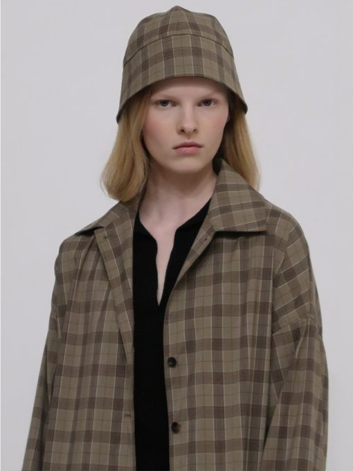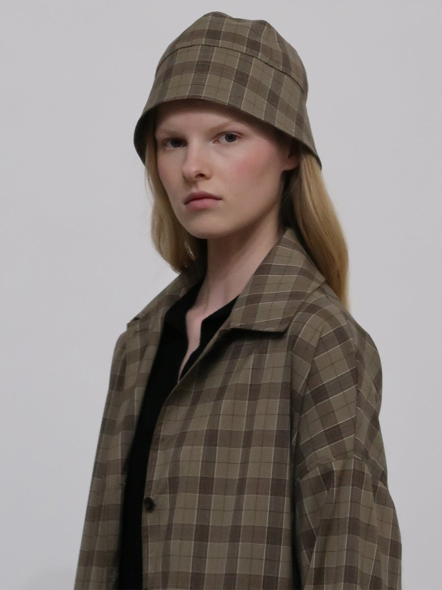 Updating Rosetta Getty’s signature hat silhouette, Pre-Fall 24’s Bucket Cap features a structured top with a short brim to create a cloche effect. Hinting at 1920’s styling and dressing, it features in the season’s Technical Plaid Suiting.
