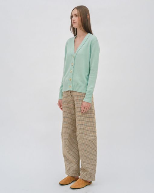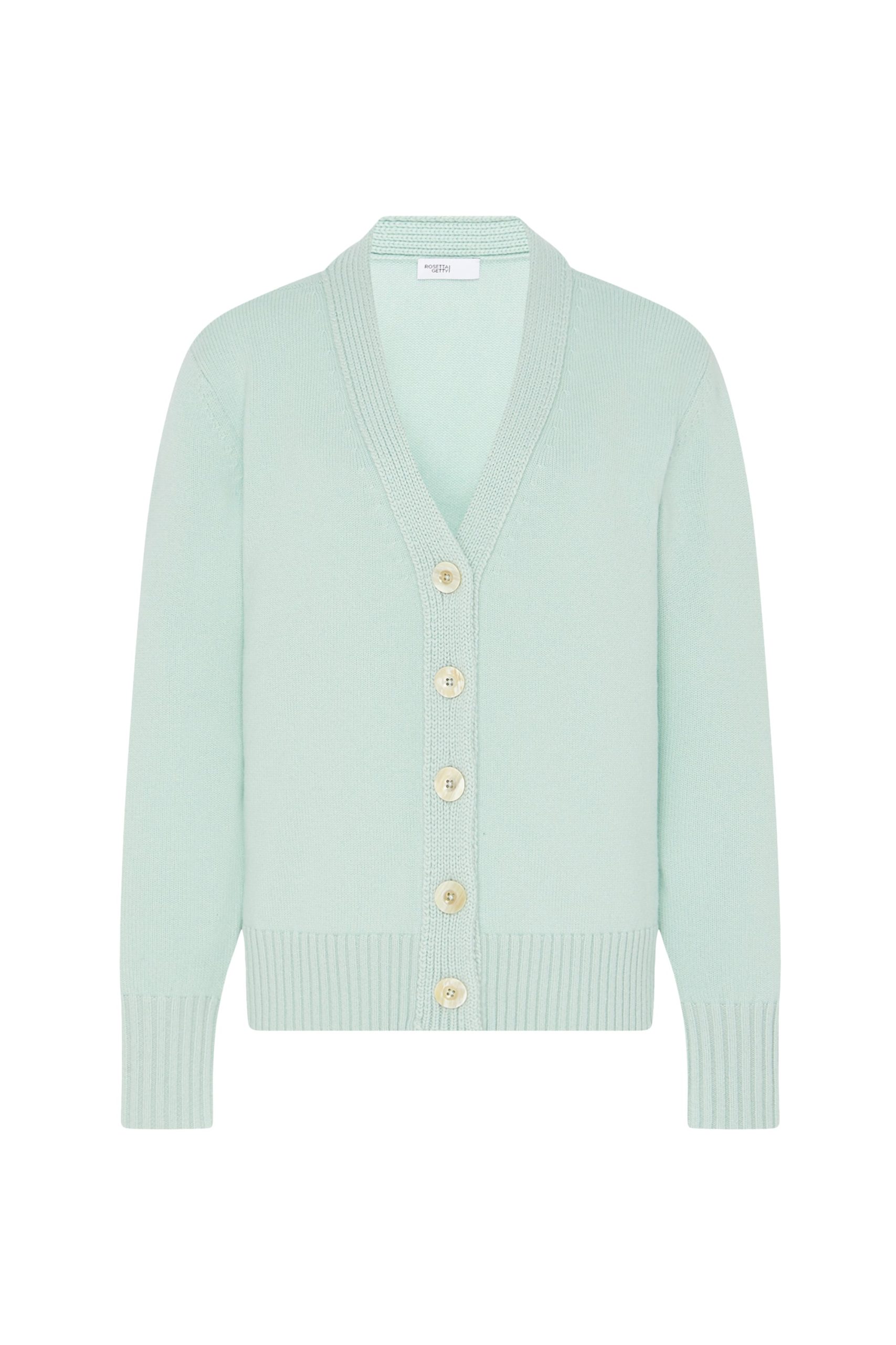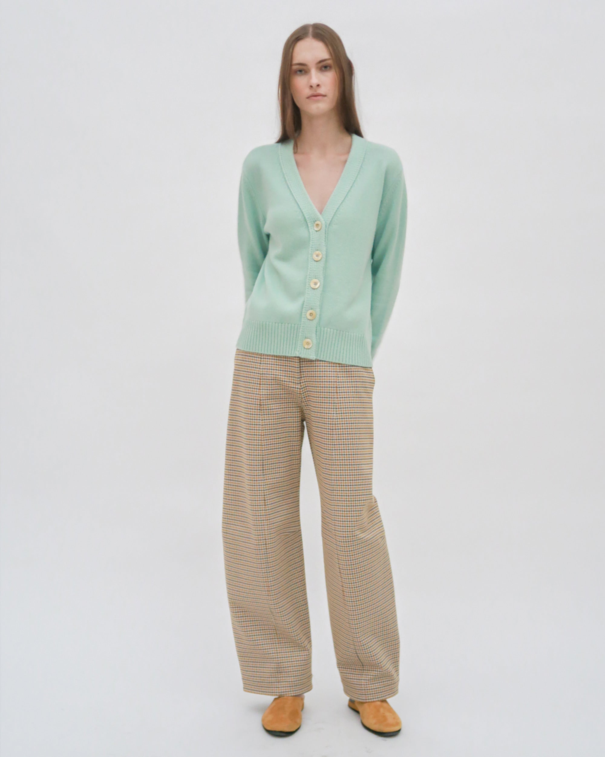 Designed with a timeless V-neck silhouette, Resort 25’s staple cardigan is knitted with soft Mercerized Wool Cashmere. Crafted with ribbed trim, it features contrast buttons and just enough room to layer over coordinating styles.