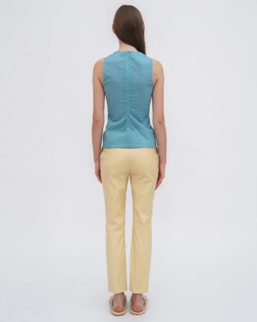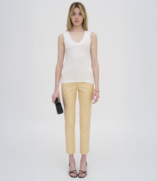 The Stretch Cotton Shantung is a crisp and structured cotton blend that offers newfound ease and comfort to tailored styles. It offers wearability to Rosetta Getty’s signature pant silhouettes.