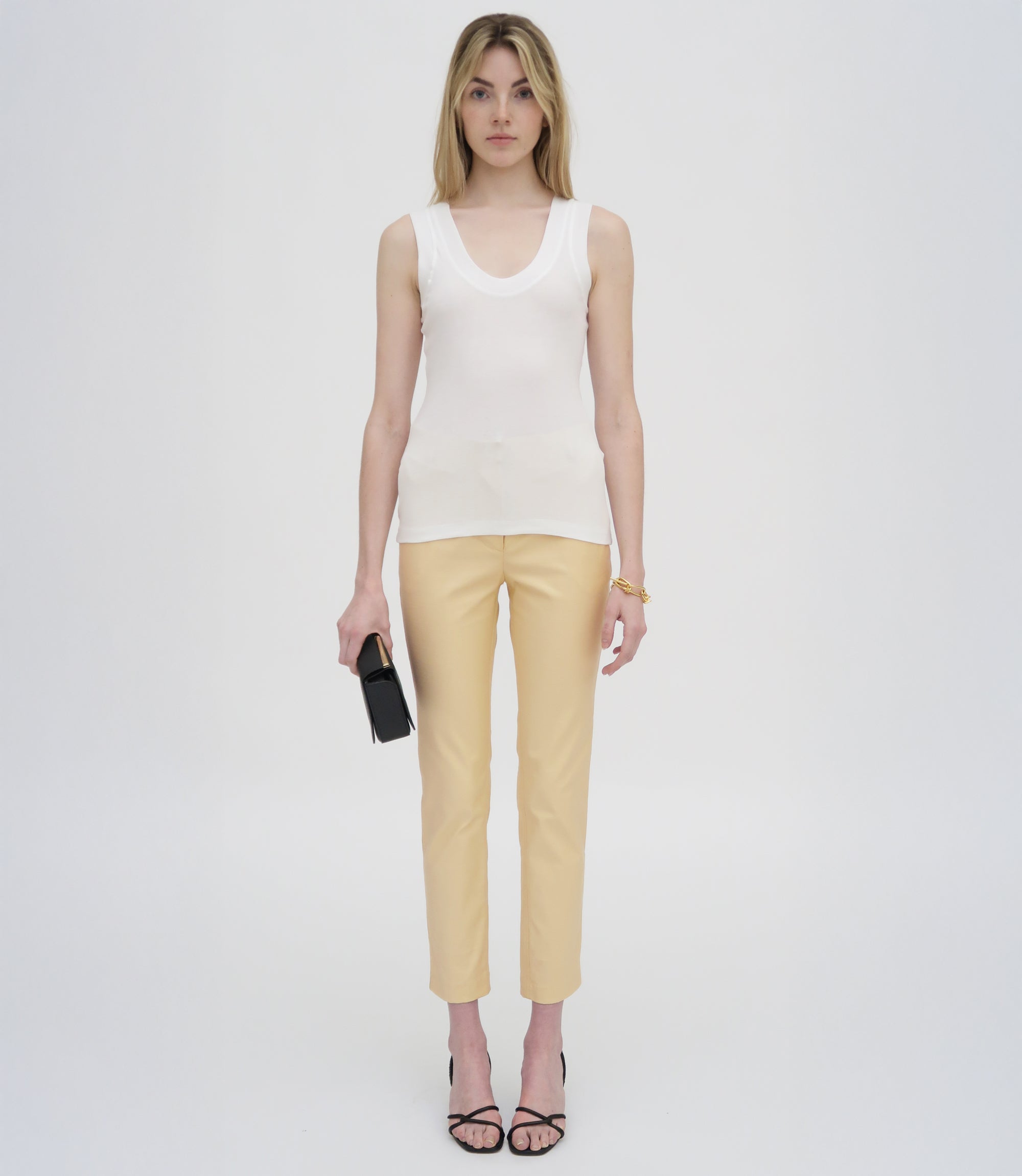 A revival of a best-selling Rosetta Getty style, the Cropped Skinny Pant returns for Resort 25 in new slub Stretch Cotton Shantung. Tailored to a slim ankle-length silhouette, the versatile style is topped with belt loops and a fitted waist.