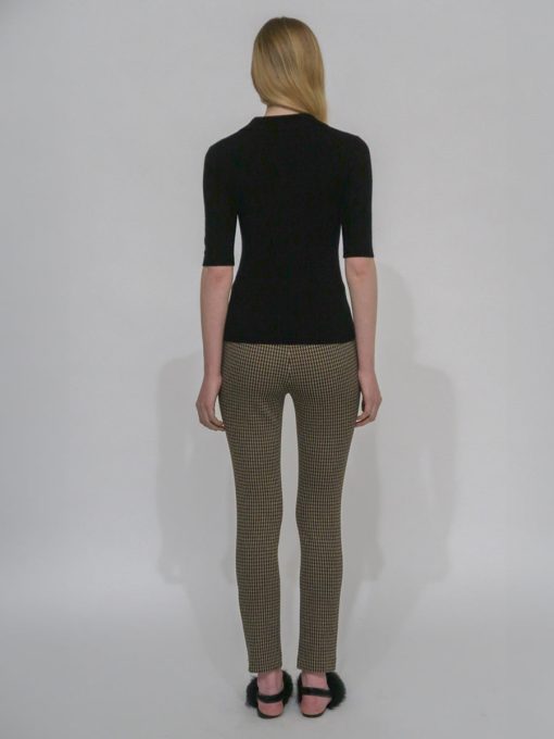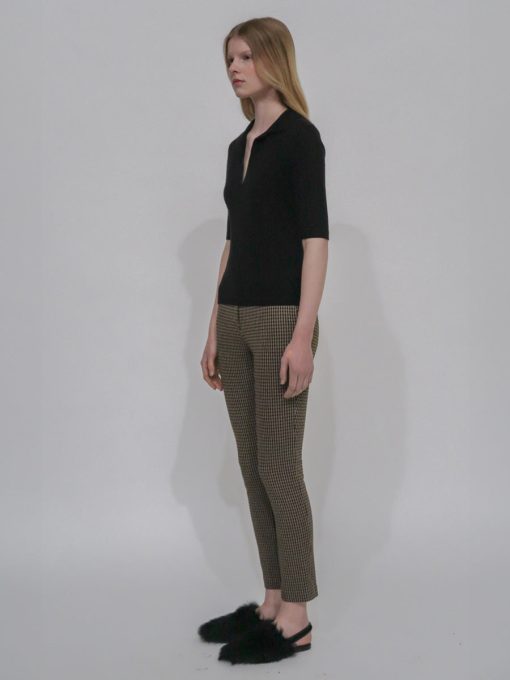 An exclusive fabrication for the season, the Houndstooth Interlock Jacquard is similar to our Interlock Jersey with a slightly slick hand and added elastic to contour the body. It’s produced by an Italian mill certified for its sustainable practices by the Associazione Tessile e Salute (Health and Textiles Association) and Forest Stewardship Council (FSC), which uses viscose produced using sustainably sourced and certified FSC wood pulp.