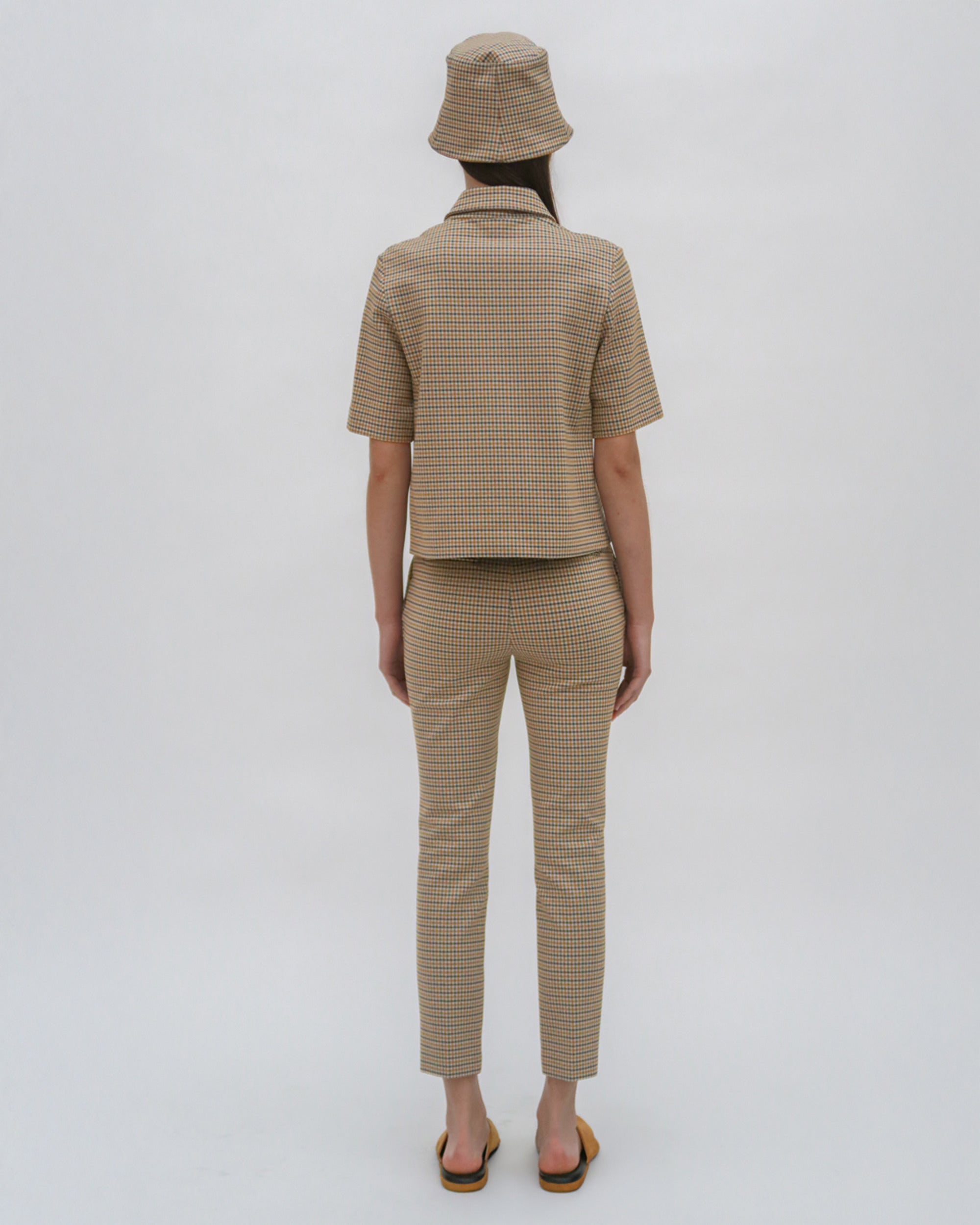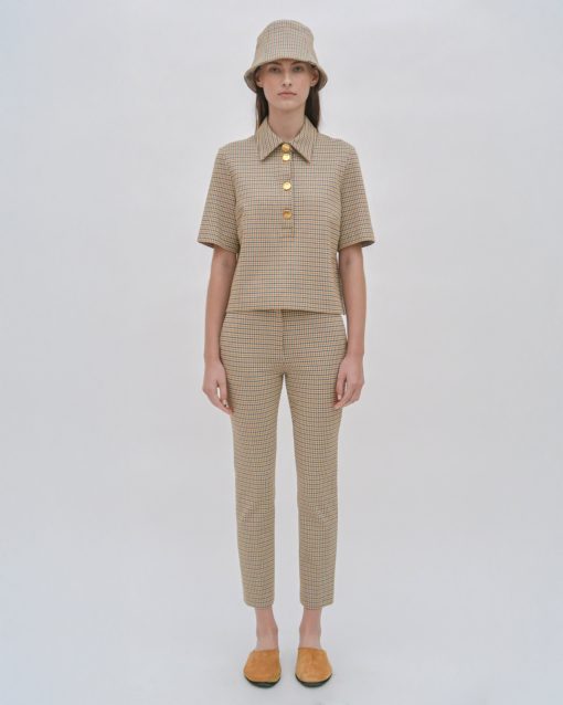 An exclusive fabrication for the season, the Houndstooth Plaid Interlock Jacquard is similar to our Interlock Jersey, which has a slightly slick hand and added elastic to contour the body. It’s produced by an Italian mill certified for its sustainable practices by the Associazione Tessile e Salute (Health and Textiles Association) and Forest Stewardship Council (FSC), which uses viscose produced using sustainably sourced and certified FSC wood pulp.