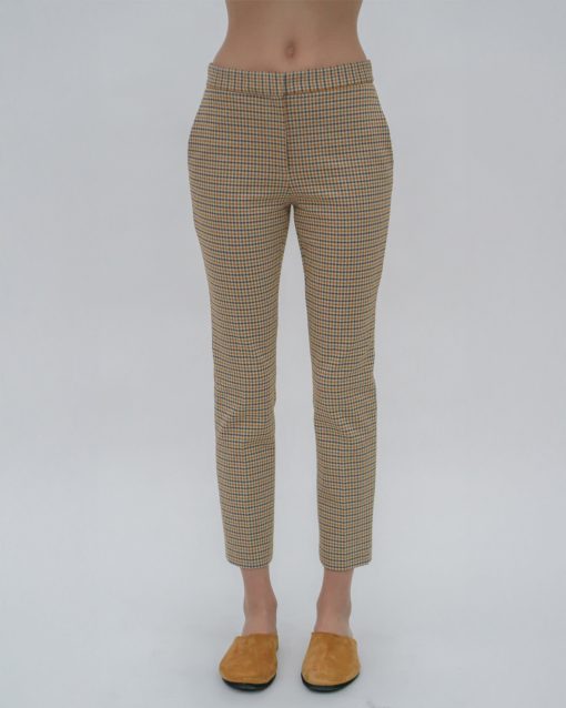 A revival of a best-selling Rosetta Getty style, the Cropped Skinny Pant returns for Resort 25 in Houndstooth Plaid Interlock Jacquard. Topped with an elasticized waist and cut slim through the leg, it is cropped above the ankle.