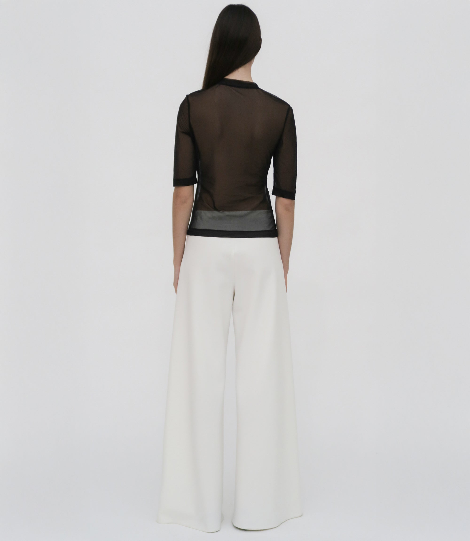 Sheer Jersey is a new transparent knitted jersey that adds versatility in styling the Rosetta Getty wardrobe.