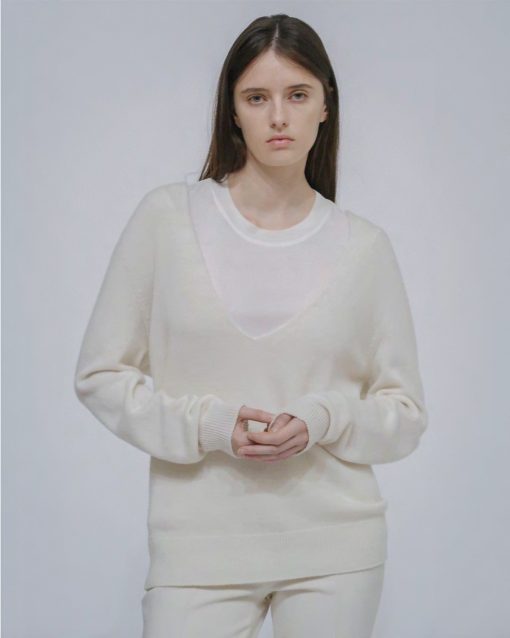 Rosetta Getty Women’s Deep V-neck Pullover | Ivory