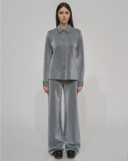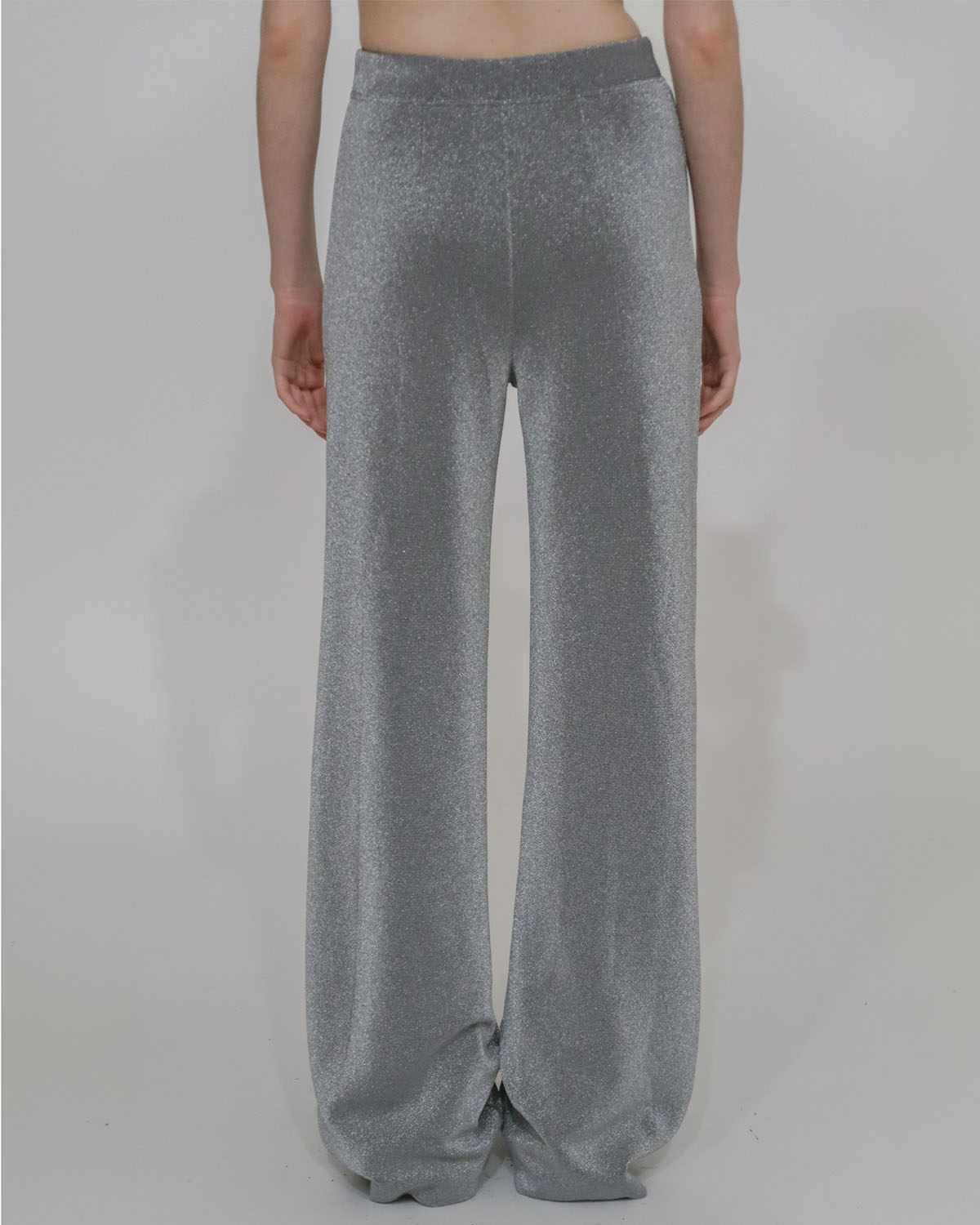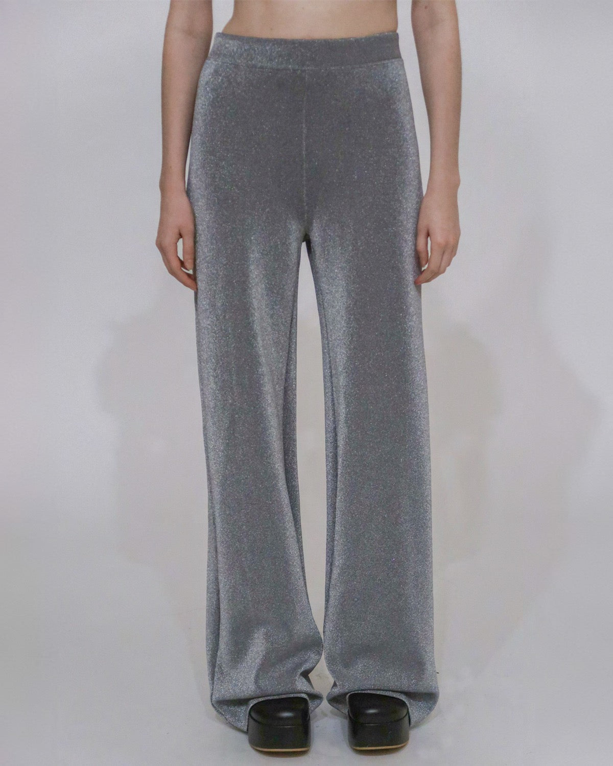 Designed with a minimalist silhouette that allows the bold pattern to shine, the Straight Pull-On Pant is crafted in Fall 24’s shimmering Lurex Interlock. Wearable with a wide stretch waistband and flattering straight leg, this style offers wearability and ease.