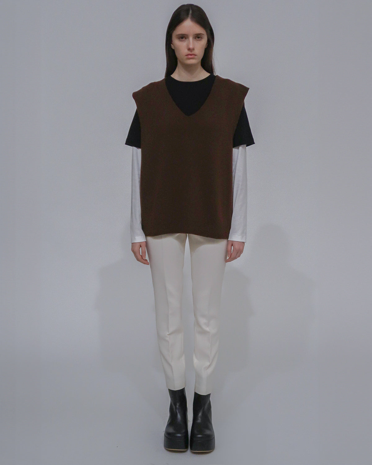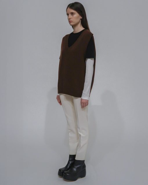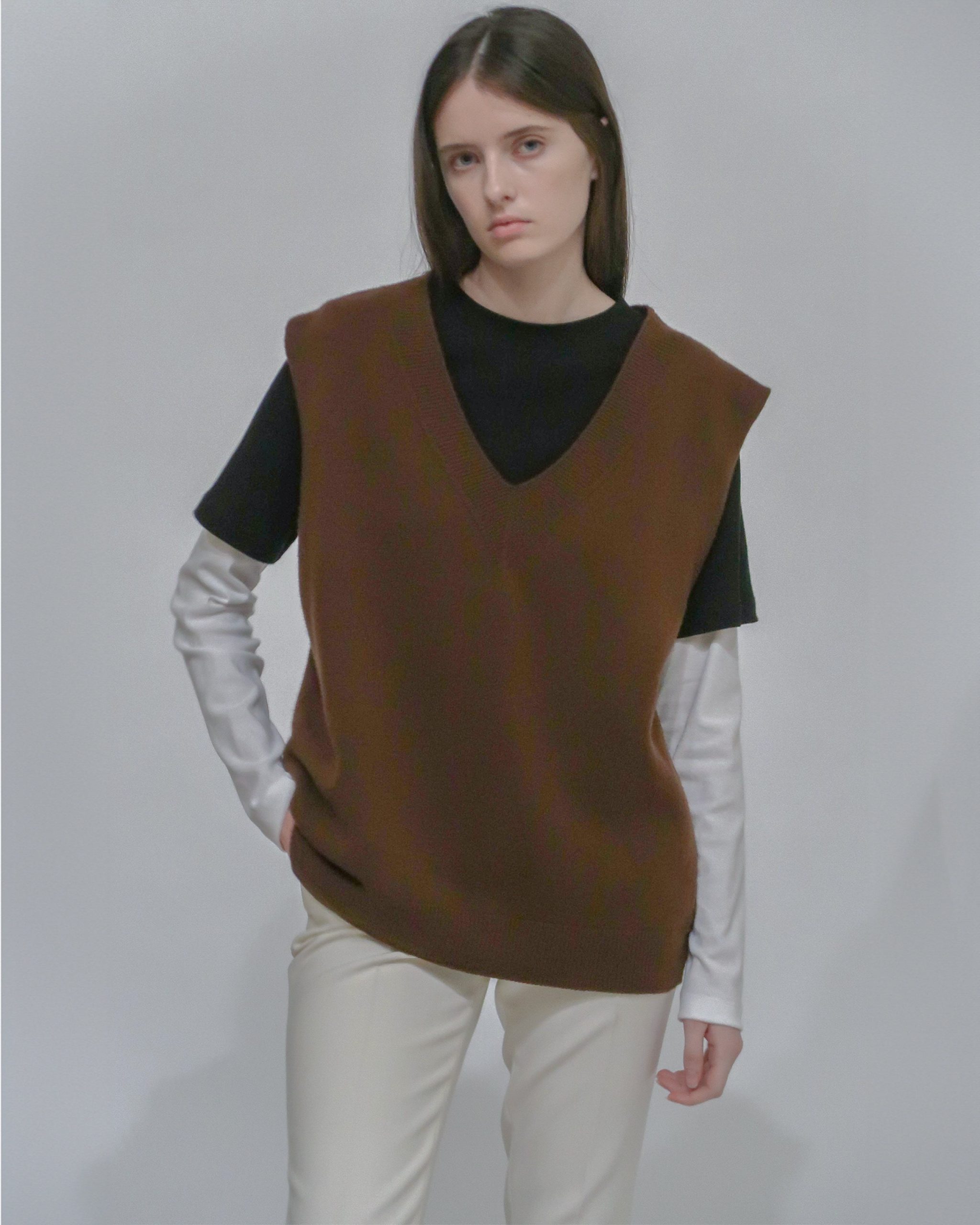 Designed for a generous fit, the Oversized Sweater Vest is knit of soft wool and cashmere. Featuring a wide V-neck, it falls to the hip with a wide fit that enables perfect layering over both jersey tees and tailored shirting.