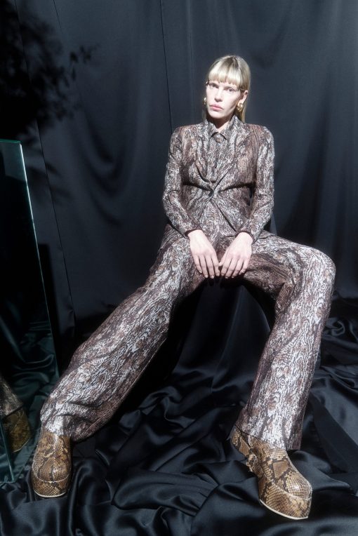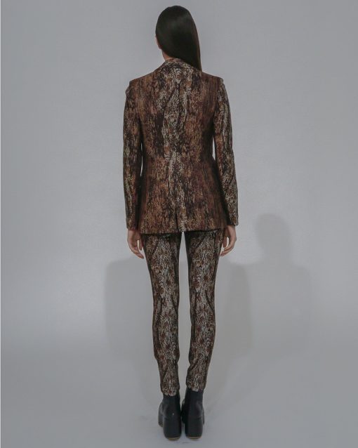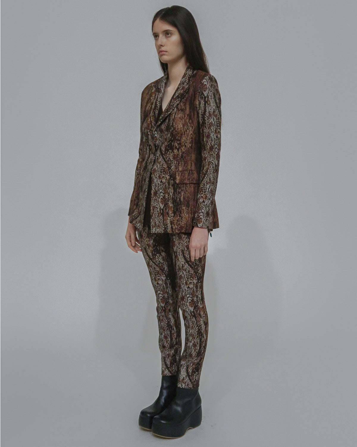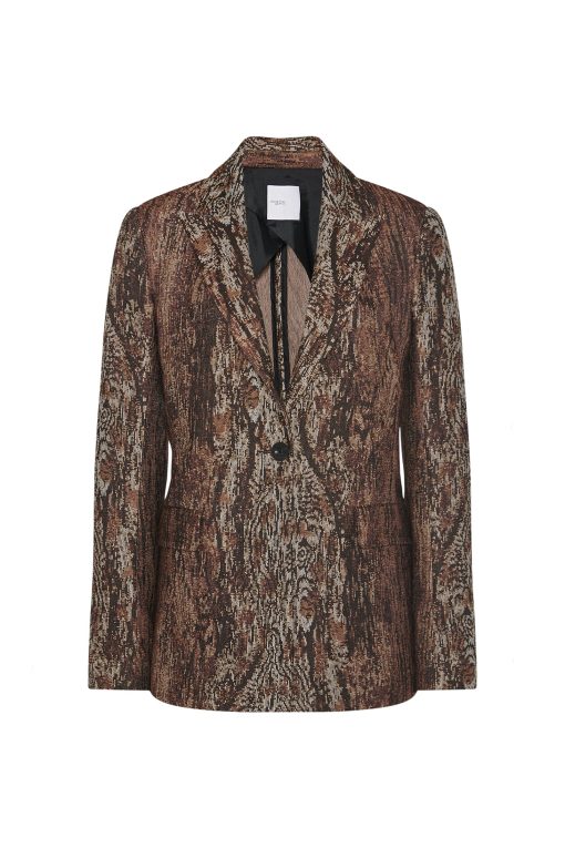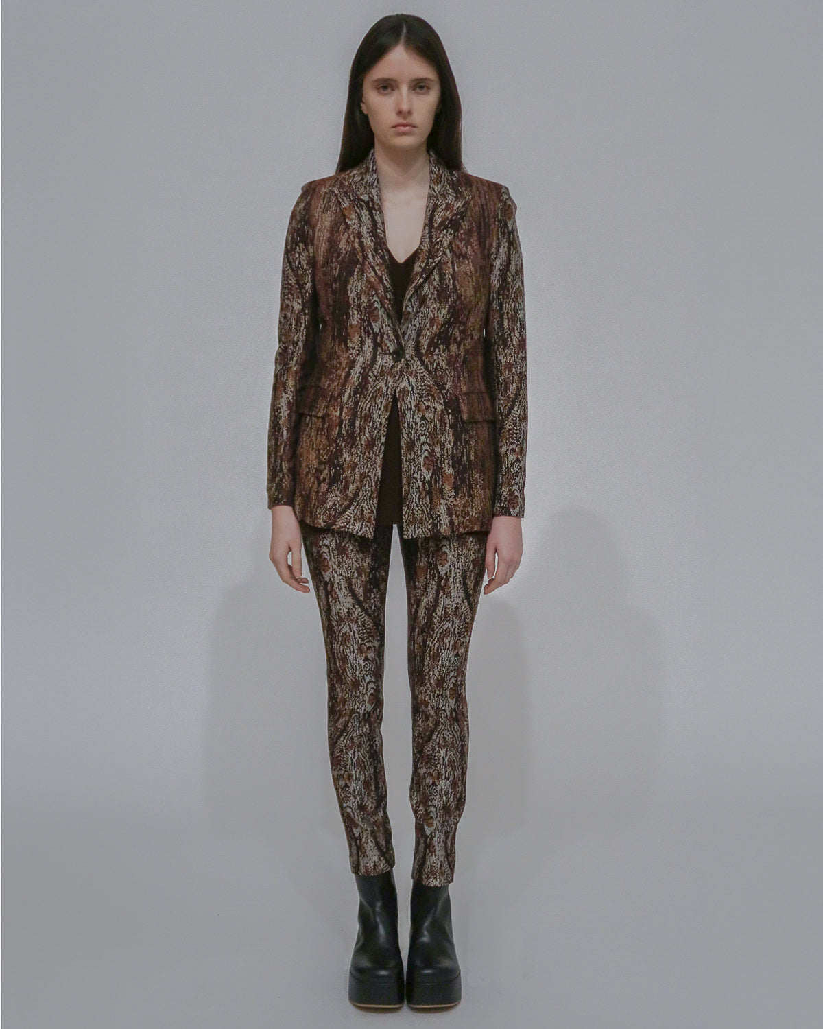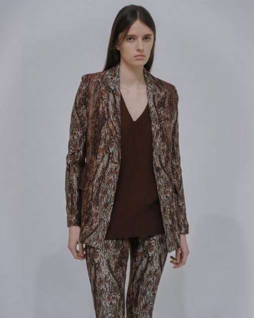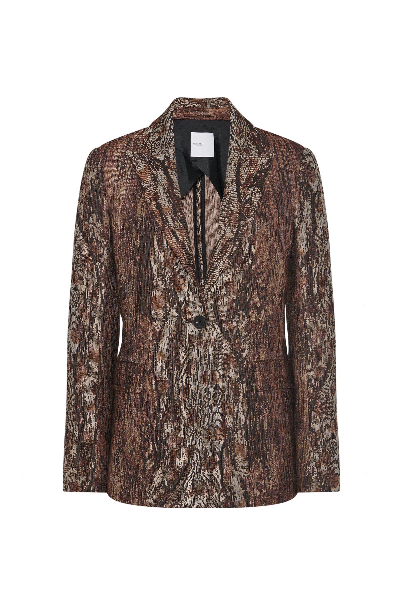 An enduring component of any wardrobe, Rosetta Getty’s blazer is cut in the seasonal Woodgrain Interlock Jacquard—spotlighting precise tailoring alongside its wearable fabrication. Sophisticated peak lapels pair with a longer silhouette while shaping seams and a bit of stretch provide a perfect—and comfortable—fit.