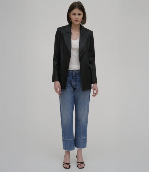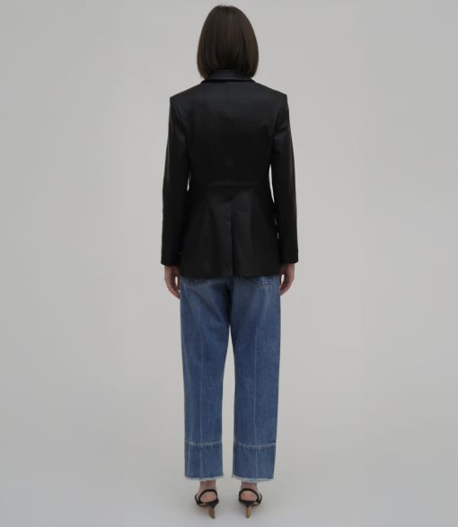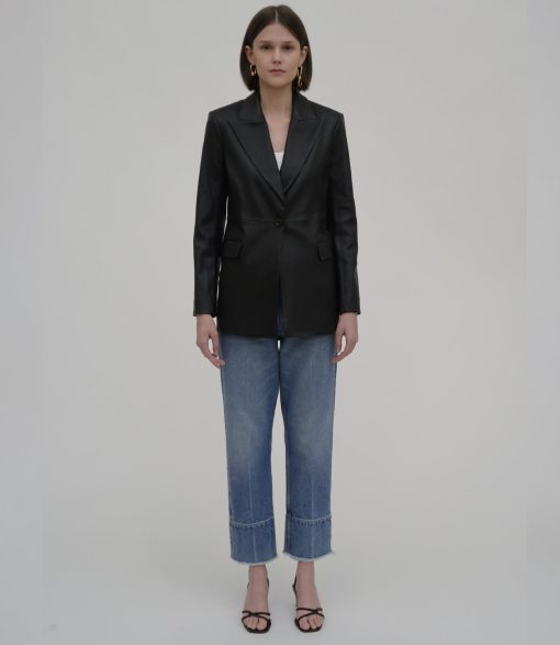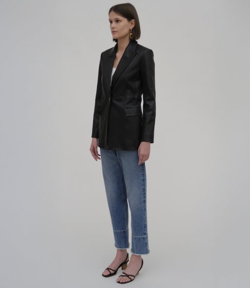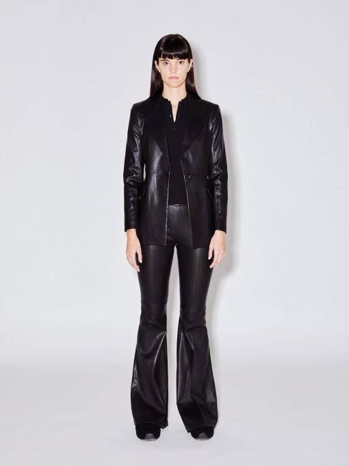 A signature Rosetta Getty style, this tailored blazer is an elevated iteration of the enduring Interlock Jersey staple. It features buttery-soft, stretch lambskin construction and is designed with sophisticated peak lapels and a longer silhouette; shaping seams provide a perfect fit.