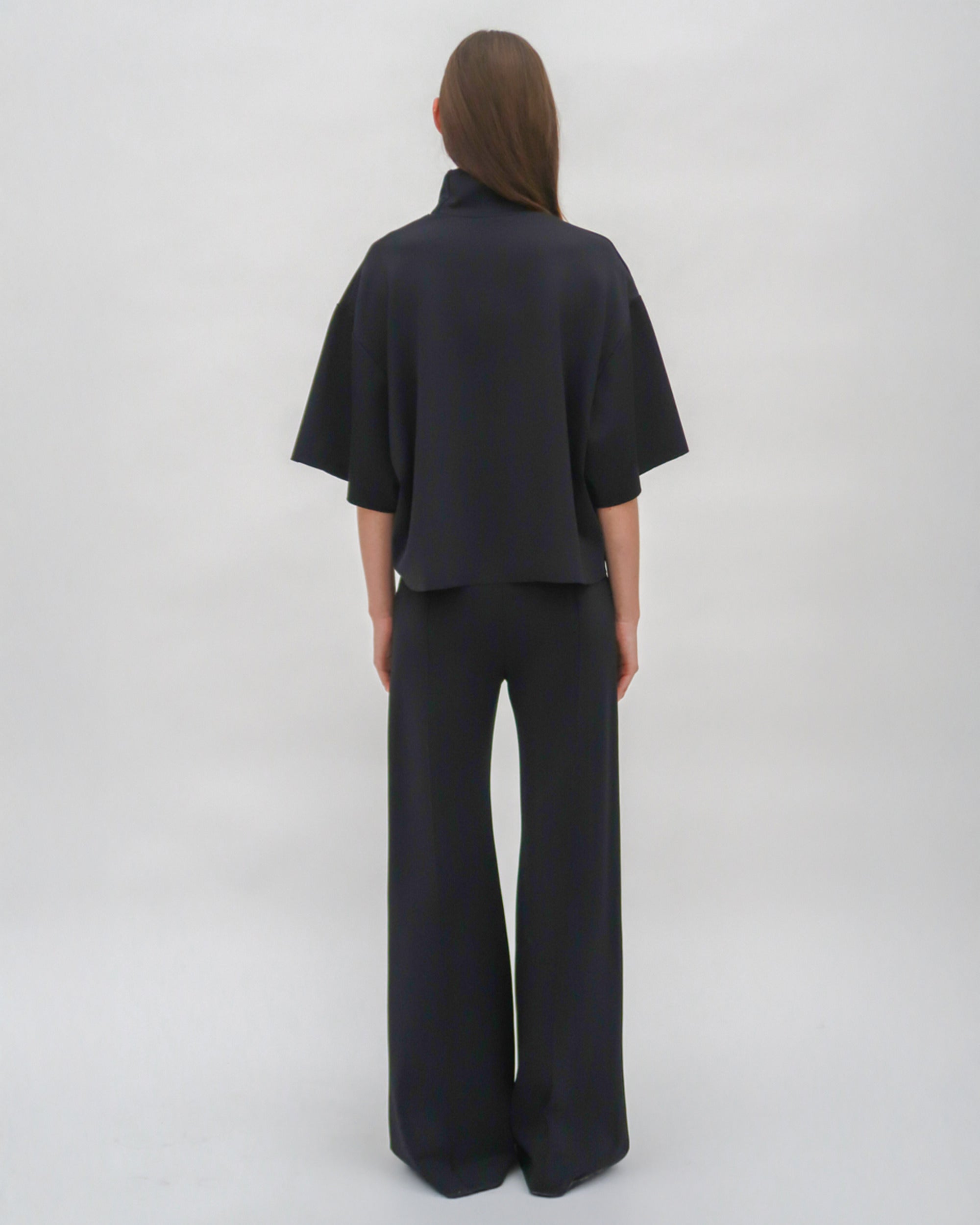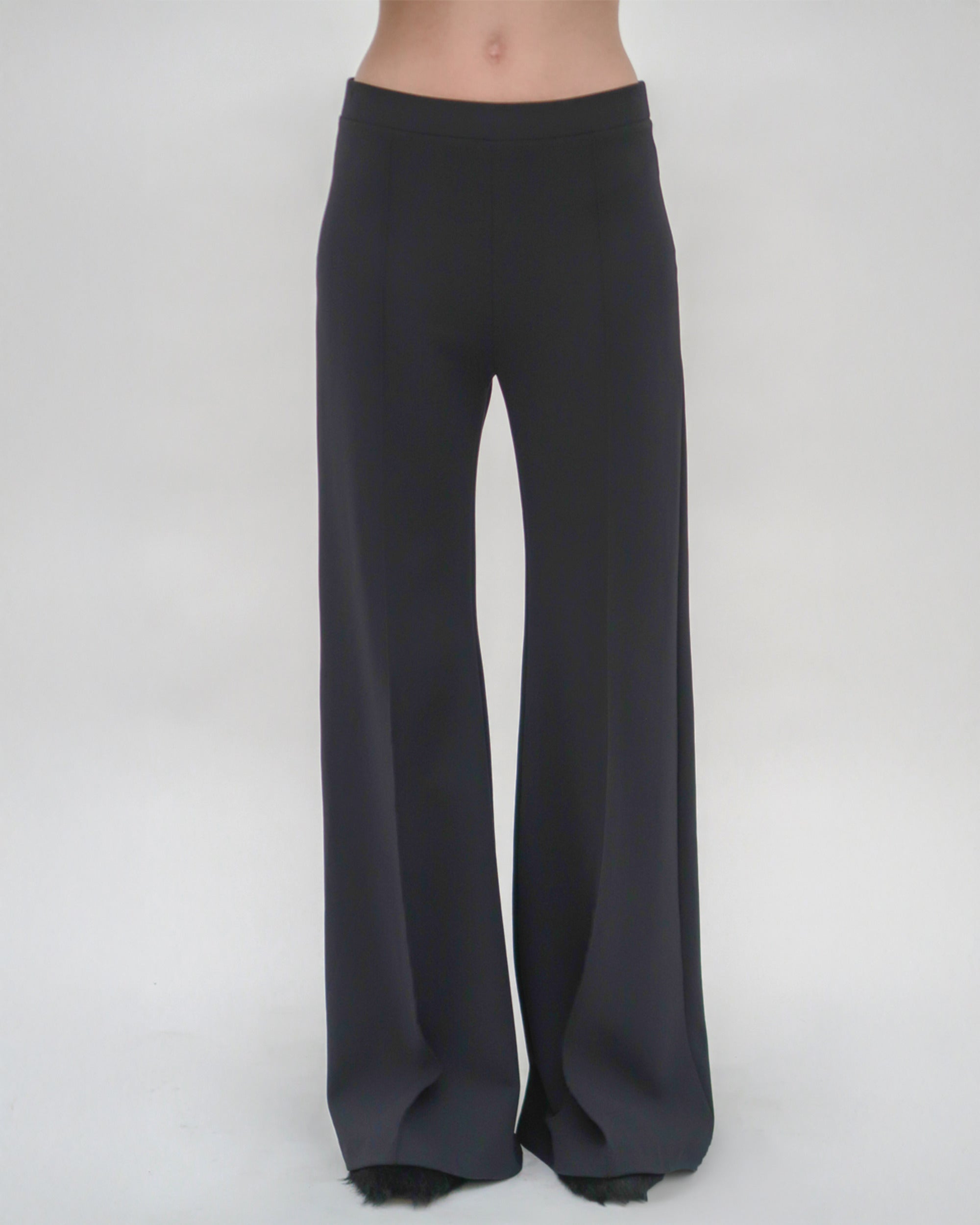 Cut to flatter and elongate, our Pintuck Wide Flare pant features for Resort 25 in technical Scuba Doubleknit. The sleek fabric gently embraces the body’s natural curves through close-fitting hips and thighs with a wide flare leg—smoothing the silhouette while remaining comfortable.