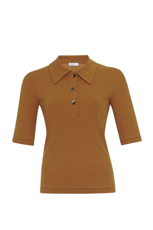 Cut from our fluid, form-fitting Mercerized Cotton Rib Jersey, this polo tee gently hugs the silhouette. A wardrobe staple we pull for time and again, this essential style enhances and defines the body’s natural curves in a comfortable and wearable way.