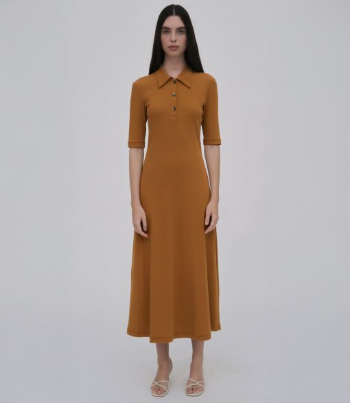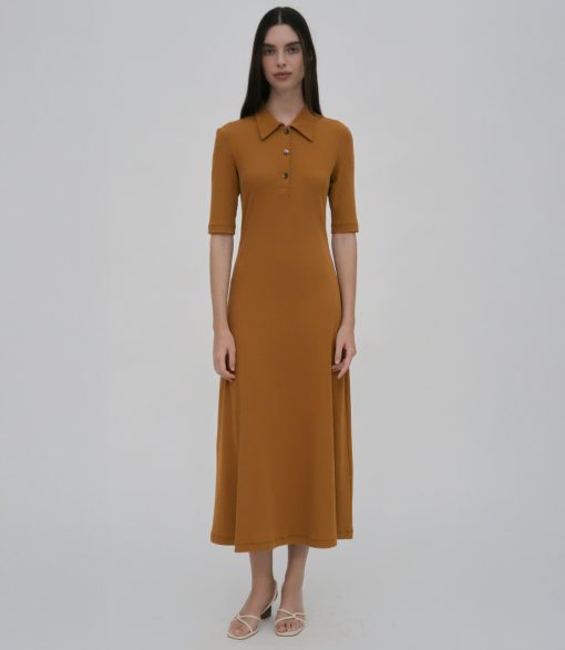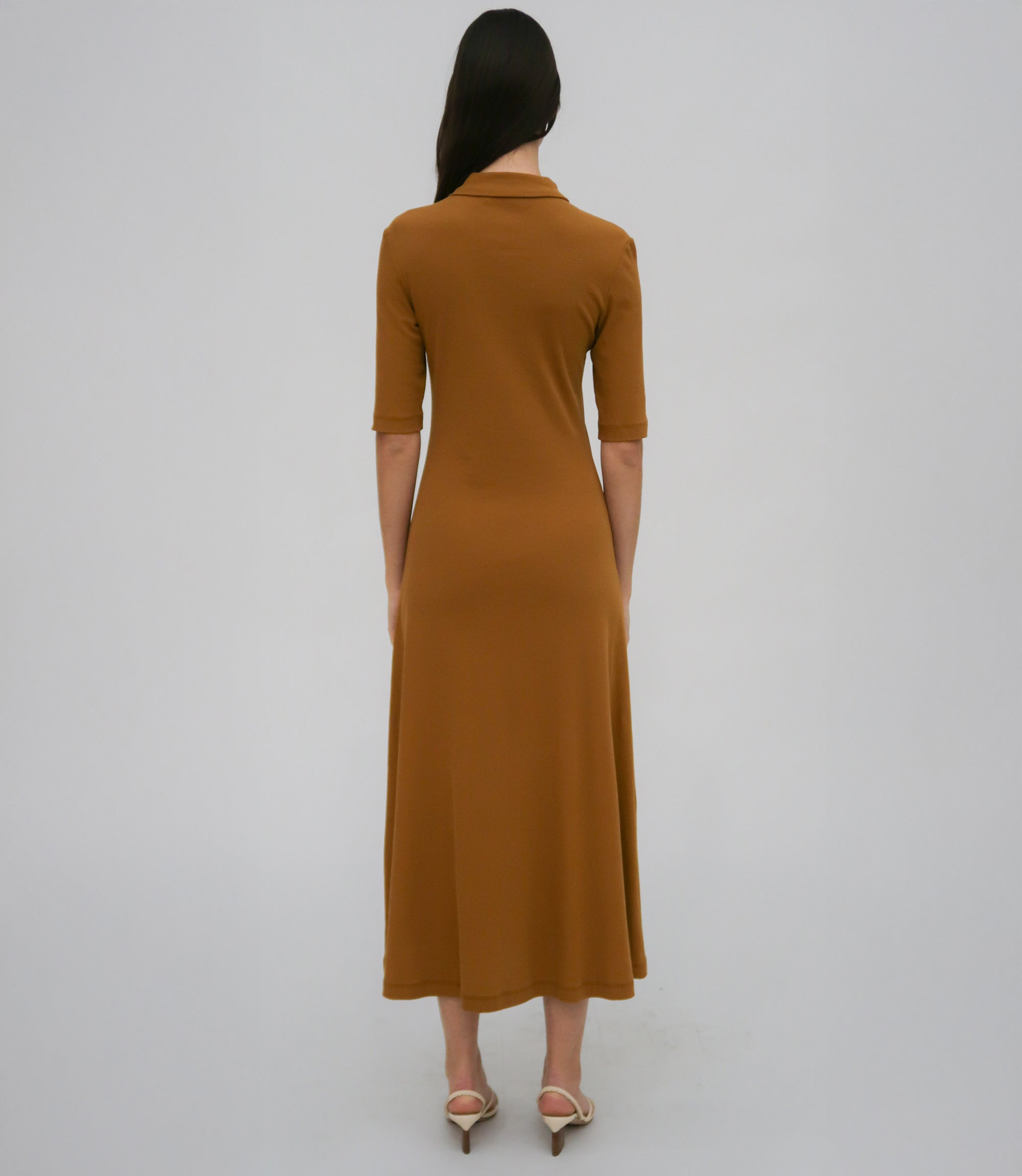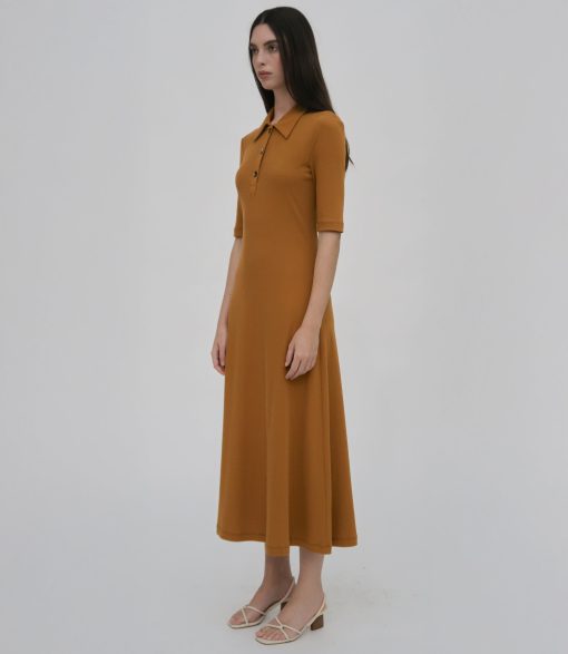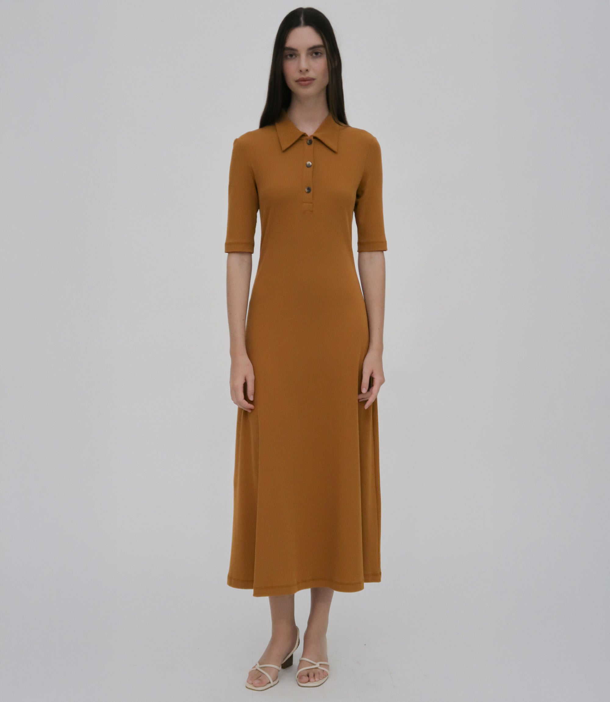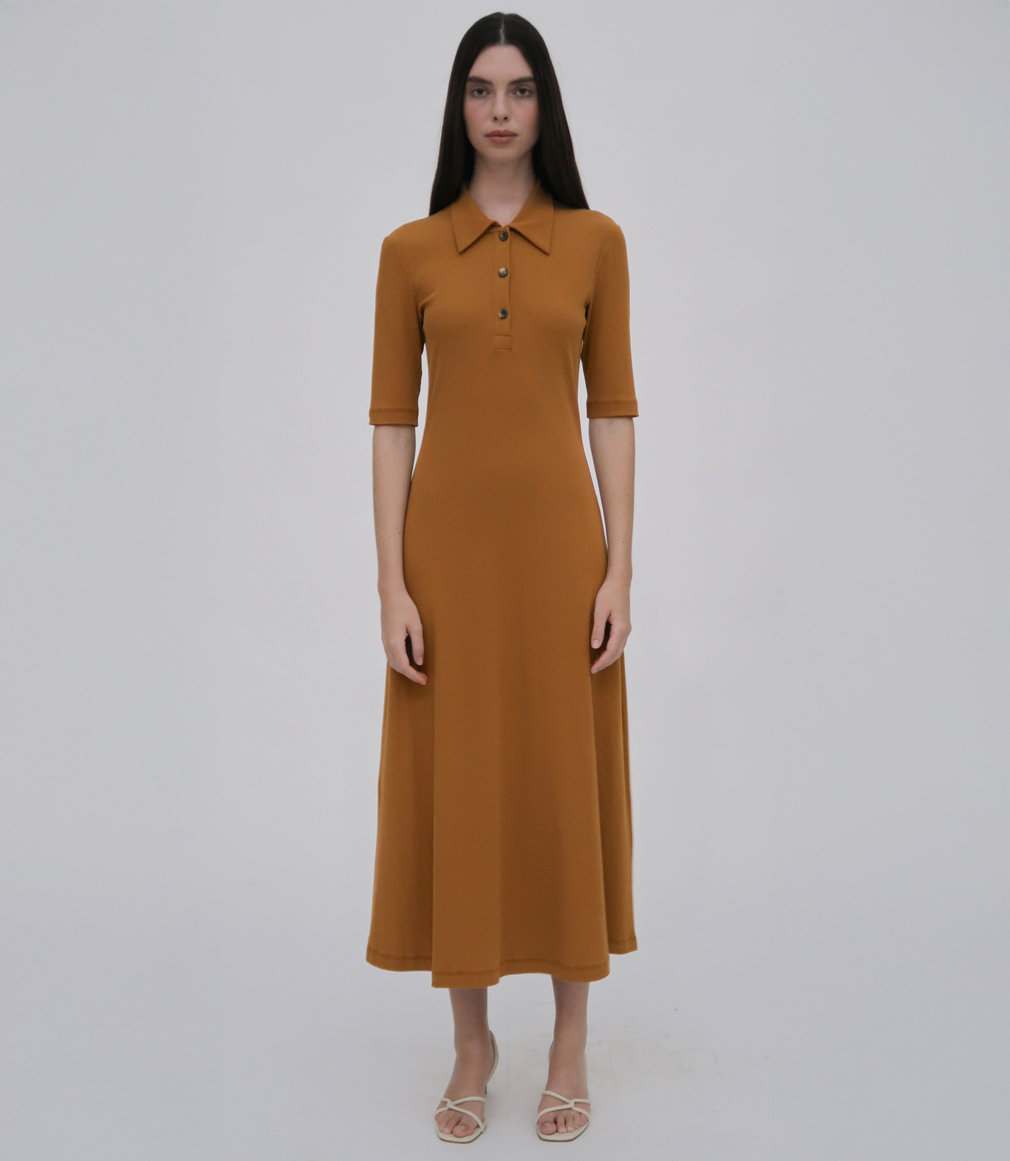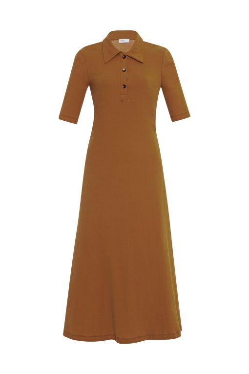 Cut close to the body before falling into a fluid A-line shape, this comfortable dress silhouette is effortless yet refined. The soft feel of the signature fiber Mercerized Cotton Jersey makes the piece infinitely wearable and easy to style while still flattering the natural body.