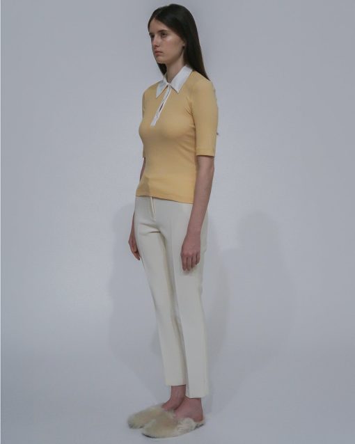 One of our longtime closet staples, this polo tee is cut from our beloved Mercerized Cotton Jersey. The fluid, soft fabric gently hugs the silhouette, enhancing and defining the body’s natural curves in a comfortable and wearable way.
