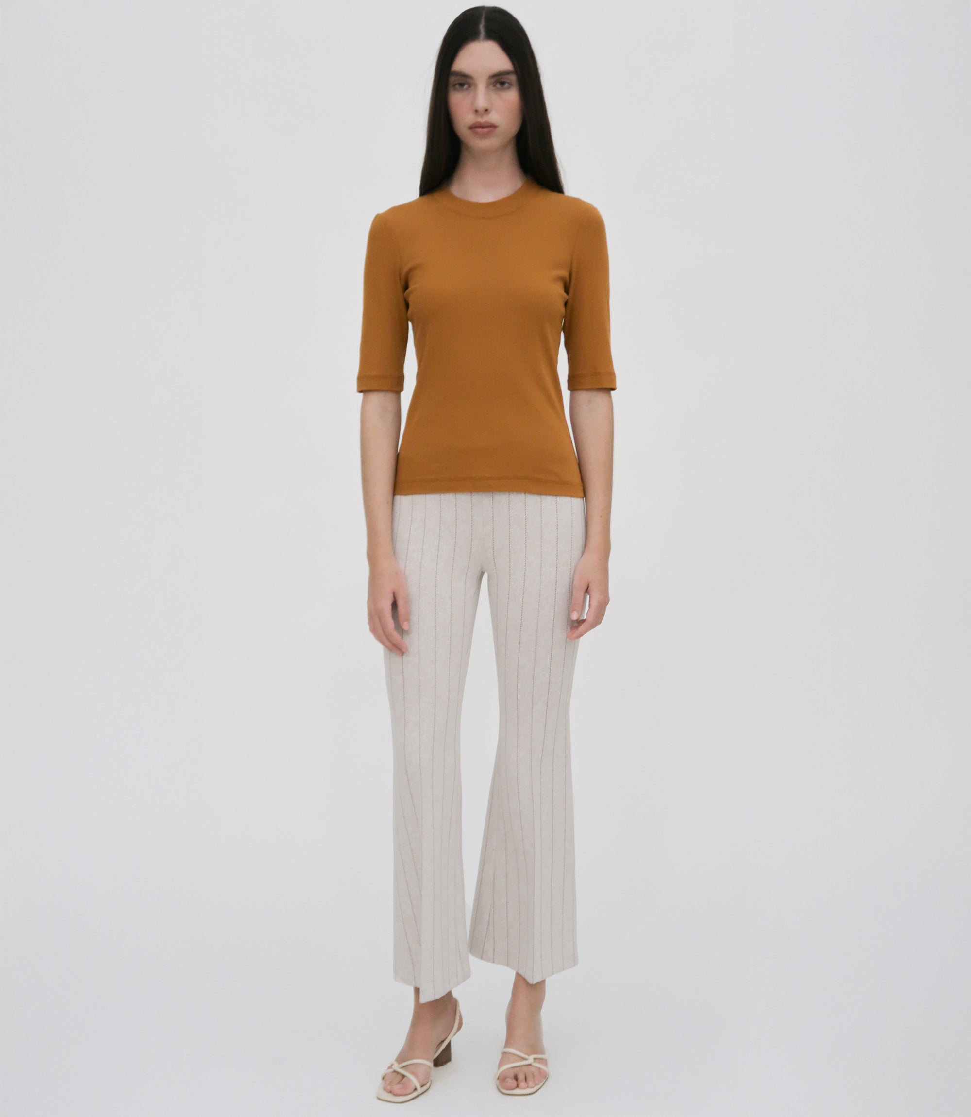 • Cropped, flared-leg silhouette