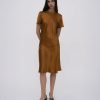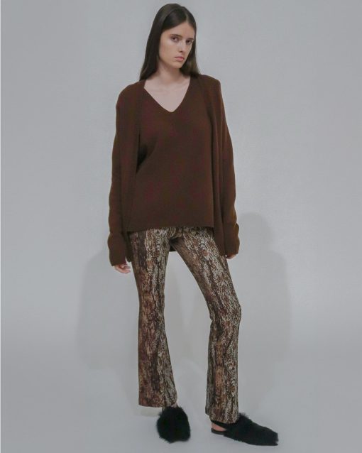 Crafted in the seasonal Woodgrain Interlock Jacquard, this signature pant is designed to flatter the body with a mid-rise and flared leg. Rosetta Getty’s special fabric and the elasticized waist impart ease to the cropped silhouette.