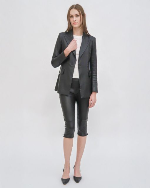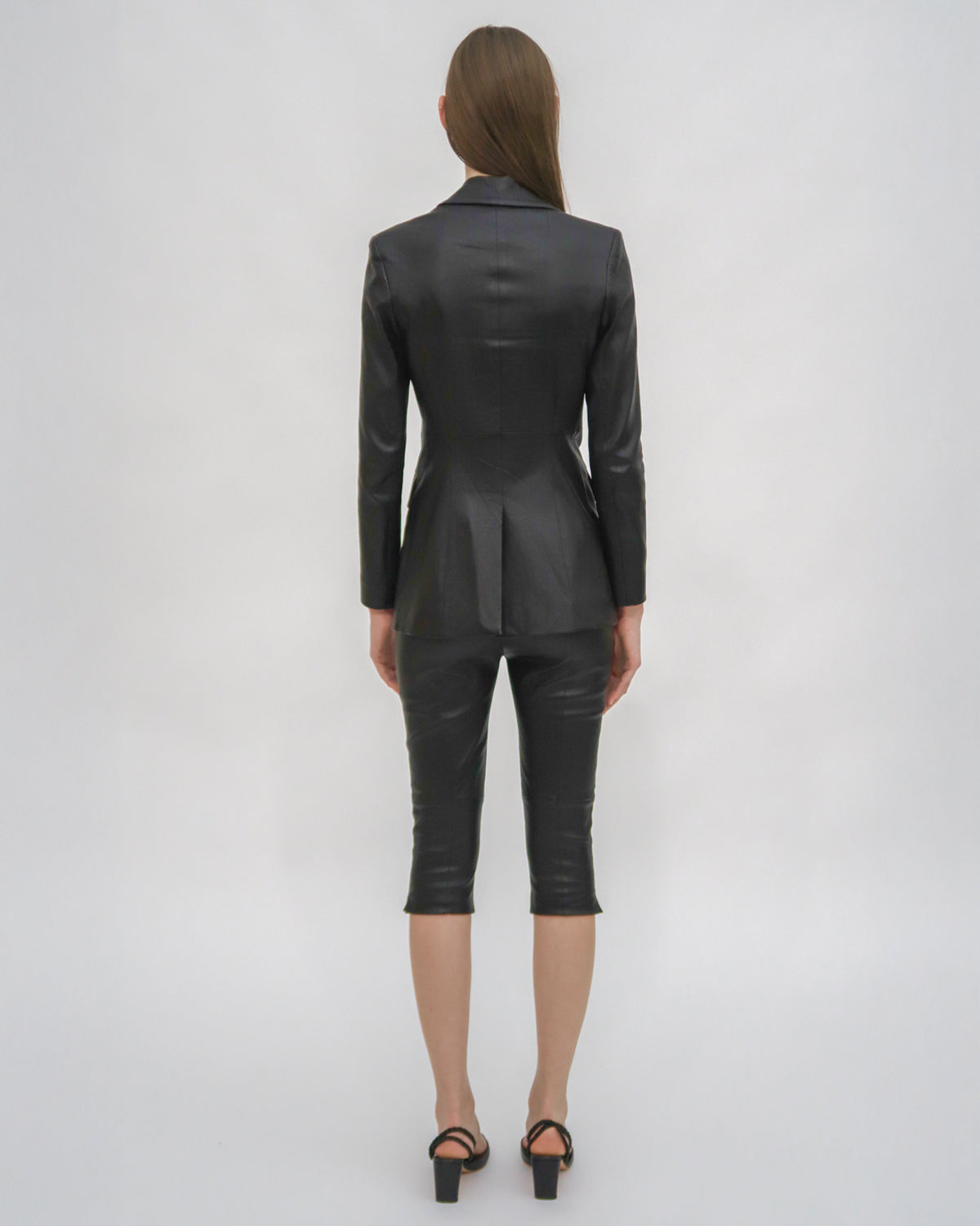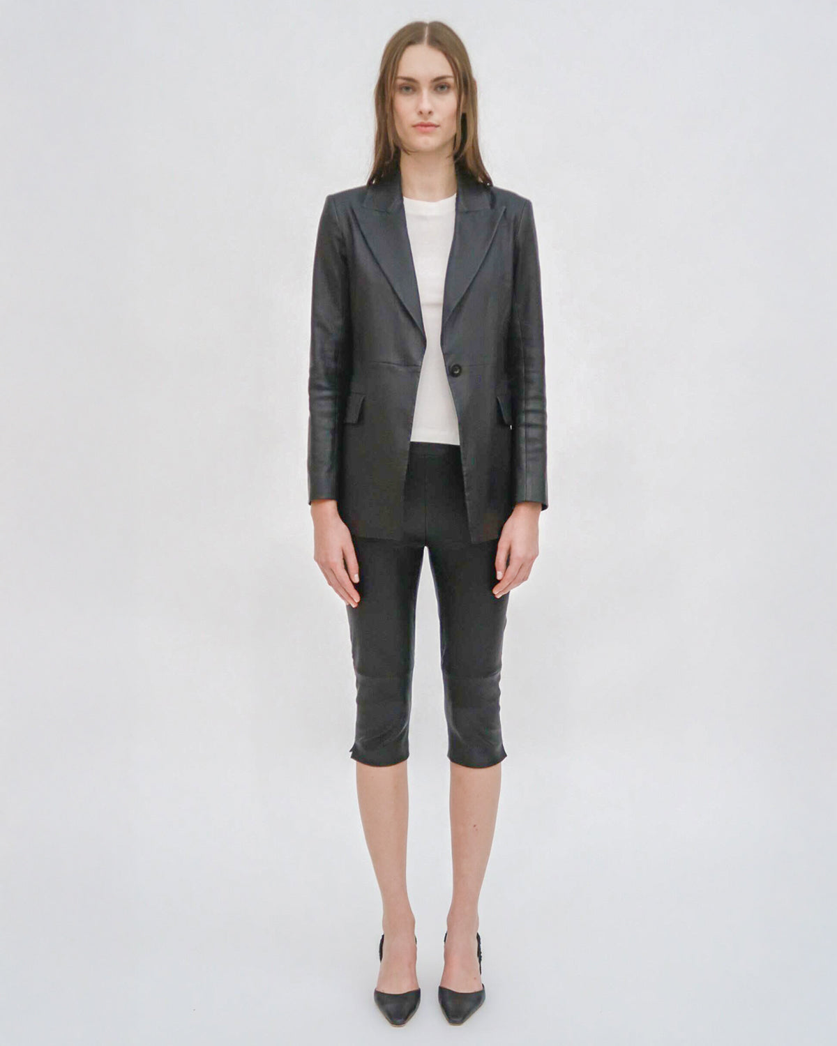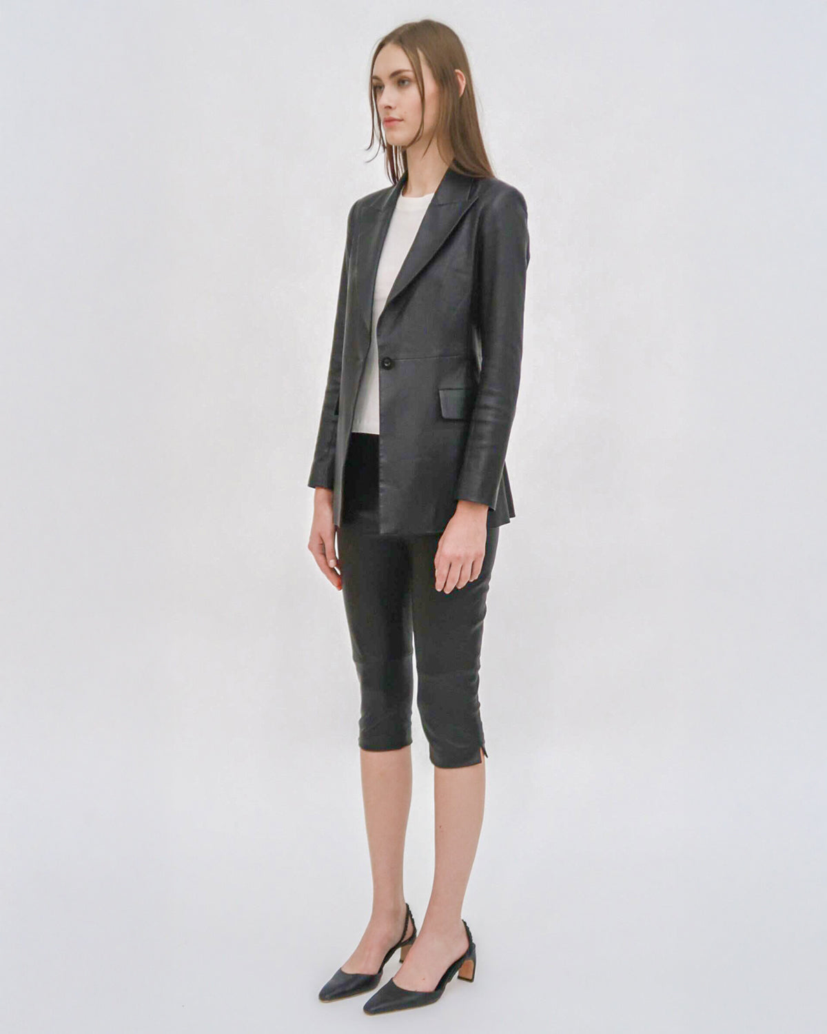 The center point of Rosetta Getty’s popular leather offering, this Stretch Plongé fabric pairs buttery-soft lambskin with a stretch cotton backing for a leisurely feel. Tanned in France, it has a sexy, slightly shiny finish while maintaining a substantial feel for structure and shape.