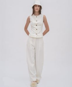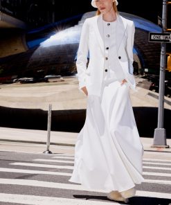 Woven in a silk-based blend of three luxury fibers, this fine-gauge yarn is soft and insulating. It knits to a smooth and lustrous finish—the perfect fiber for Pre-Fall 25’s classic silhouettes.