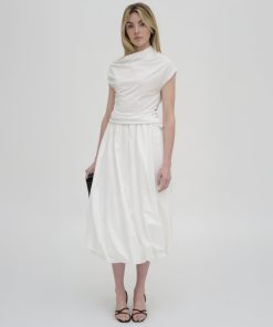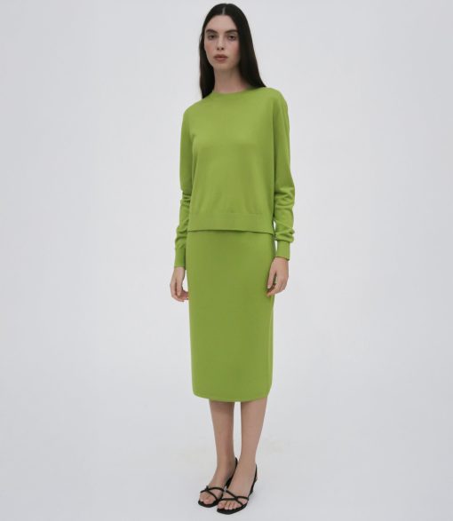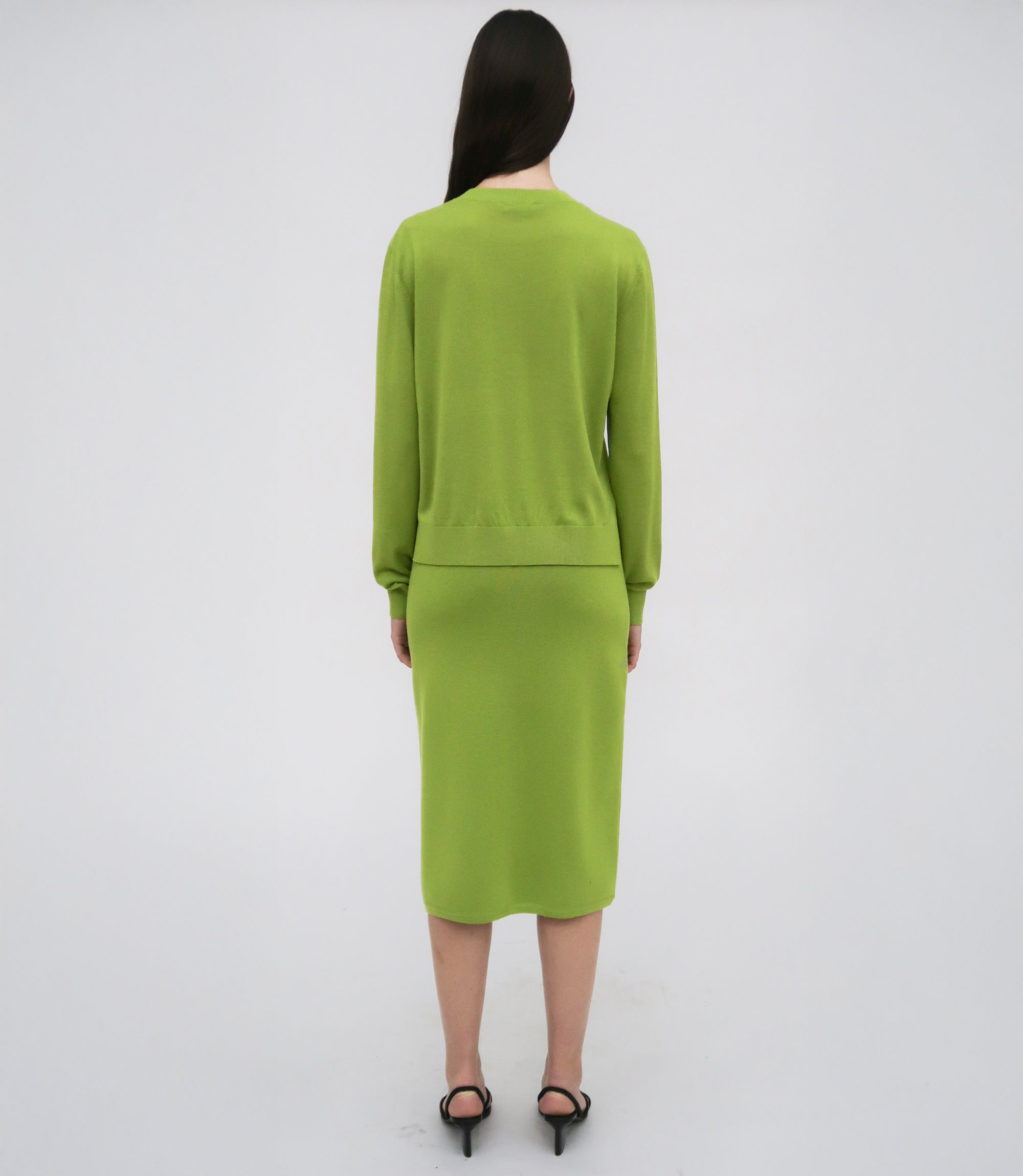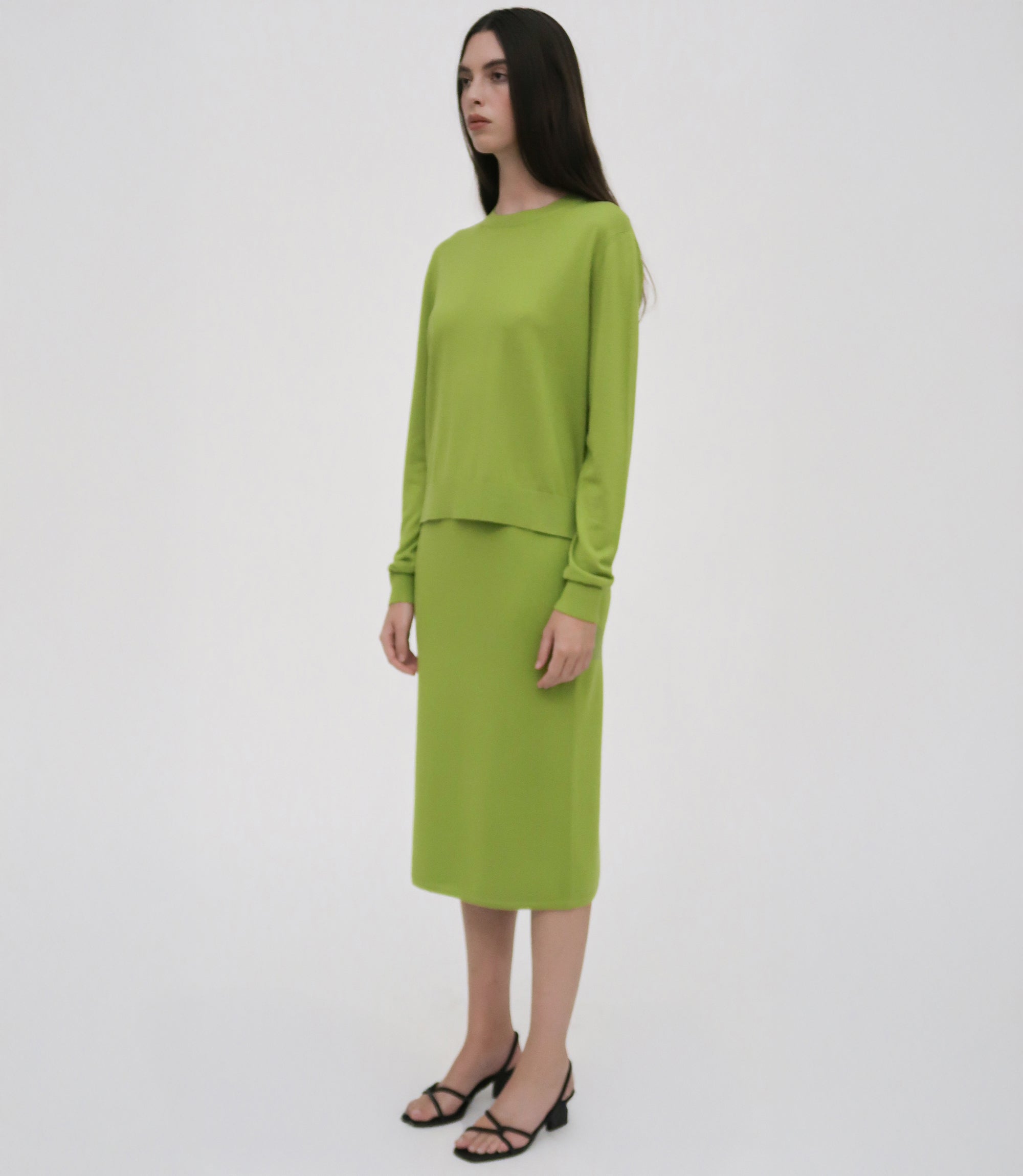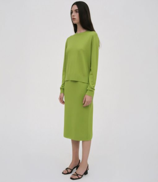 Knit in our Silk Wool Cashmere yarn, the Relaxed Crewneck Sweater has a polished look and a lustrous finish. Designed for pairing with the coordinating Midi Skirt, this soft sweater offers season- spanning wear with its timeless look and fit.