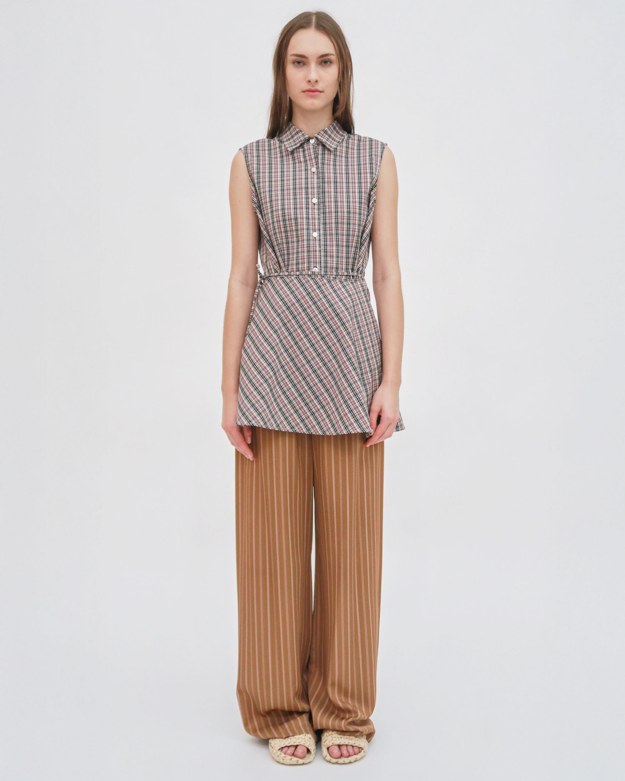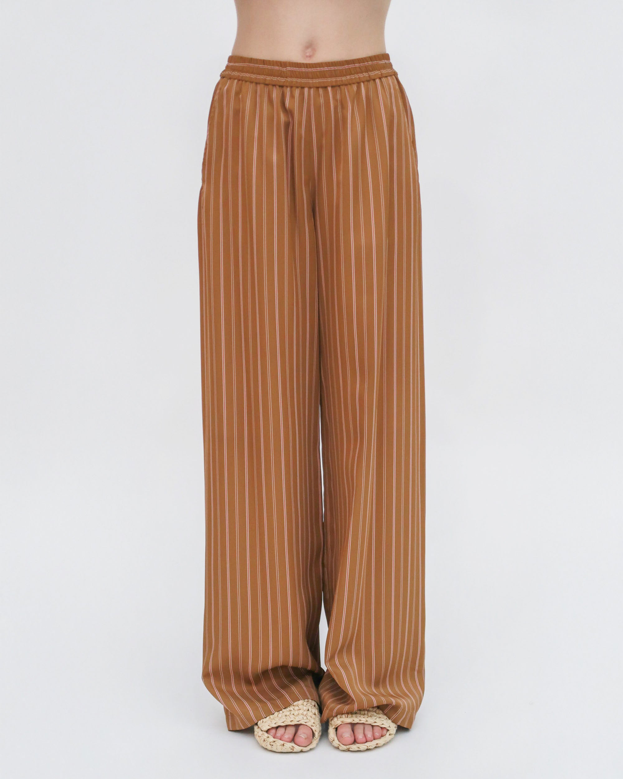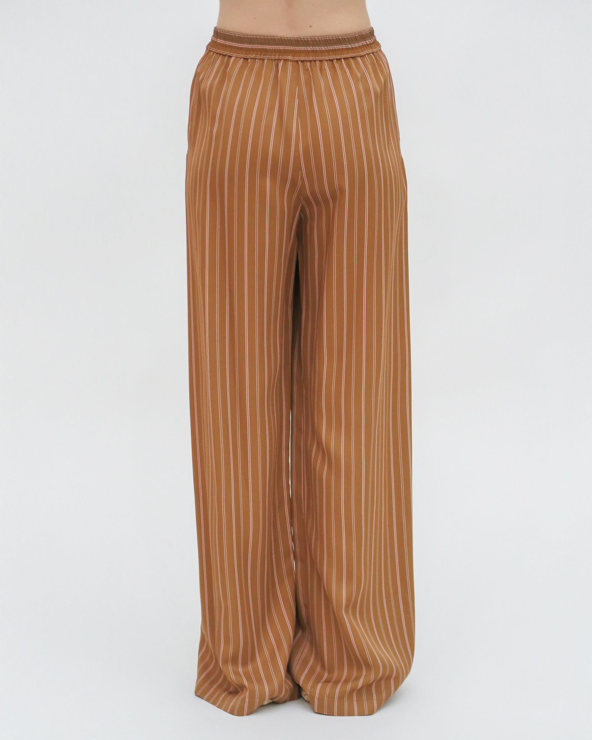 Crafted of Spring 25’s Jacquard Stripe Shirting, a Japanese fabric with a lightweight feel, Rosetta Getty’s Relaxed Pull-On Pant has an inherently casual quality with an elasticized pull-on silhouette. Semi-tailored, the style has a flattering wide-leg shape with a flowing fit that can easily be dressed up or down.