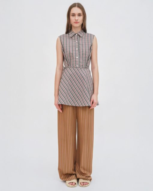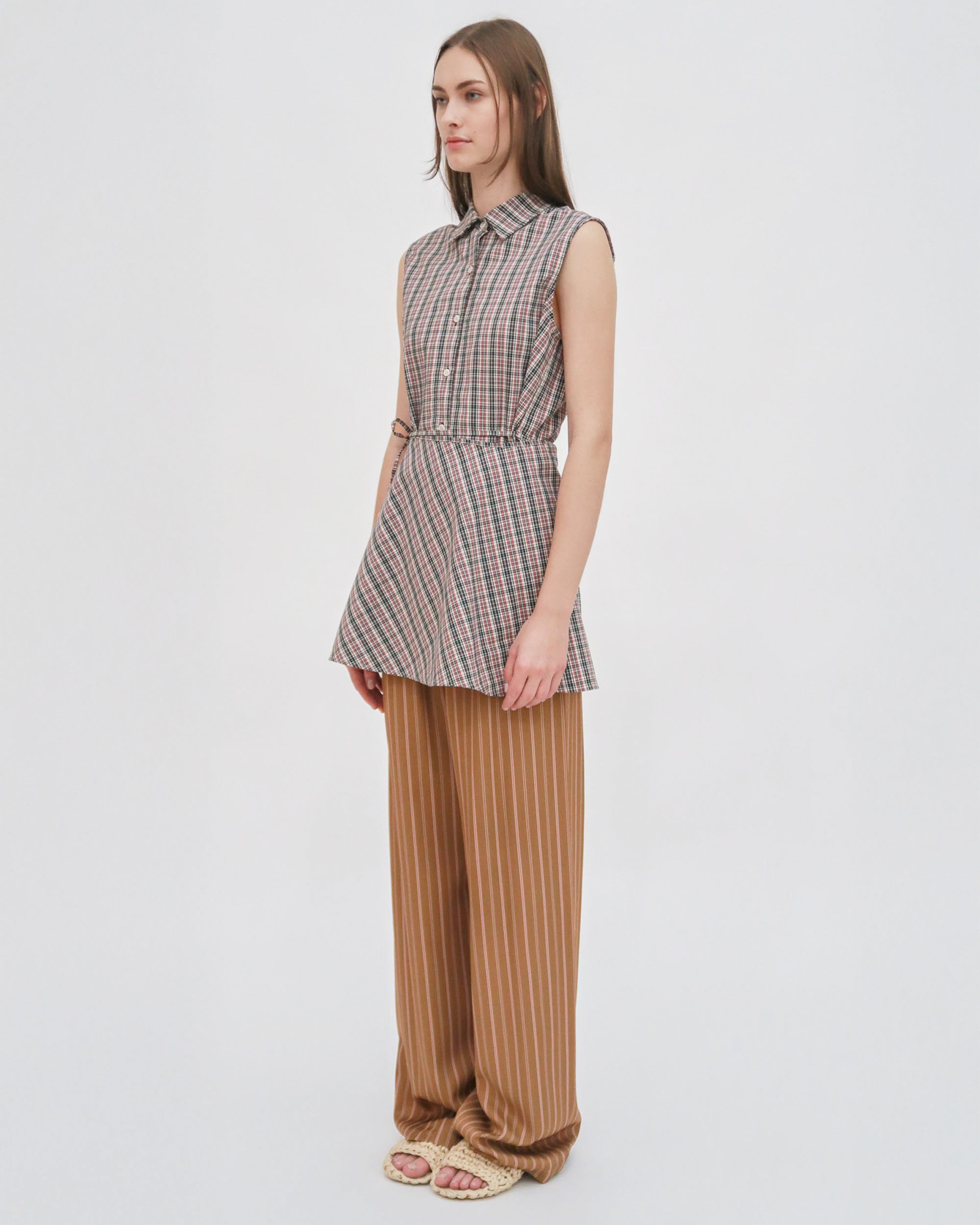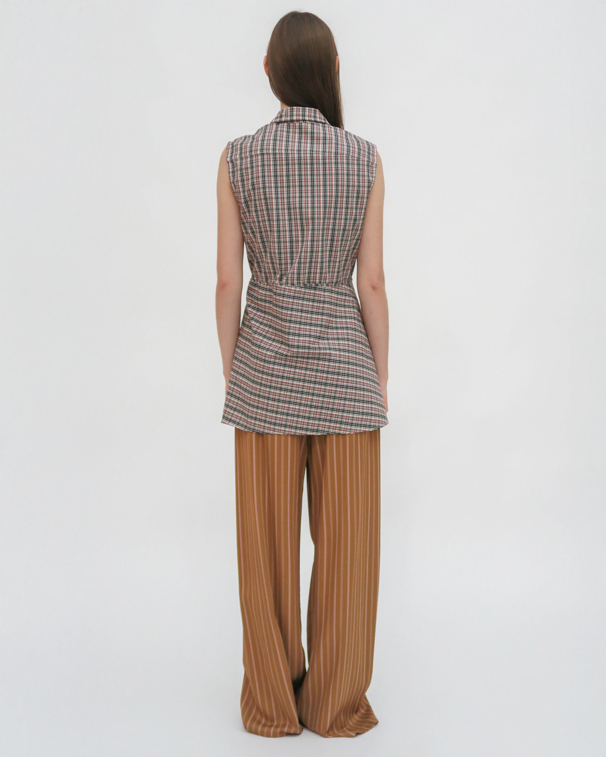 Crafted of Spring 25’s Jacquard Stripe Shirting, a Japanese fabric with a lightweight feel, Rosetta Getty’s Relaxed Pull-On Pant has an inherently casual quality with an elasticized pull-on silhouette. Semi-tailored, the style has a flattering wide-leg shape with a flowing fit that can easily be dressed up or down.