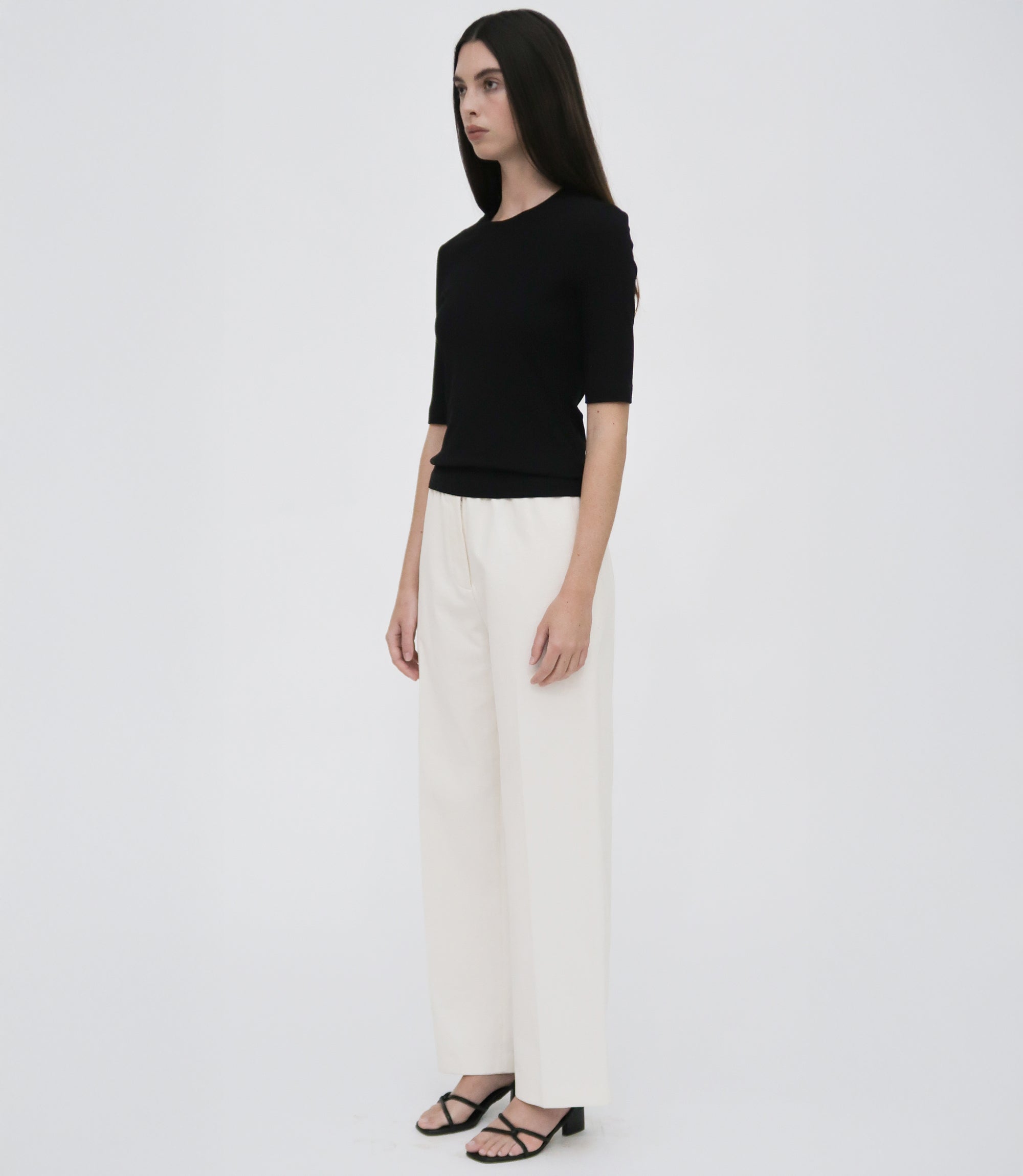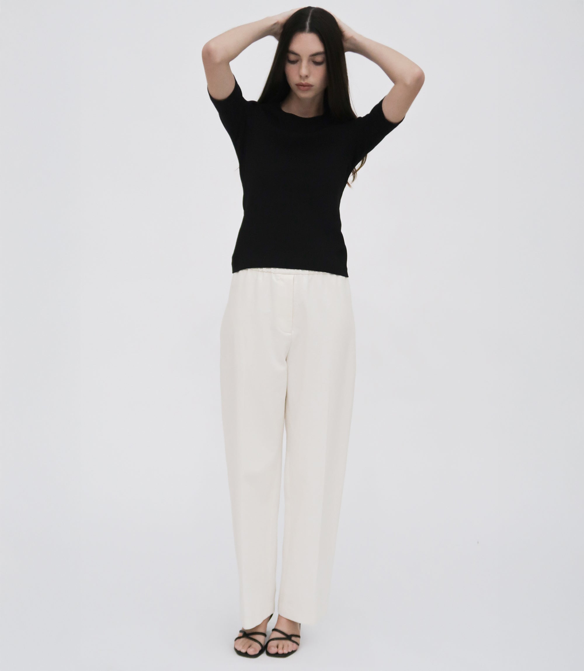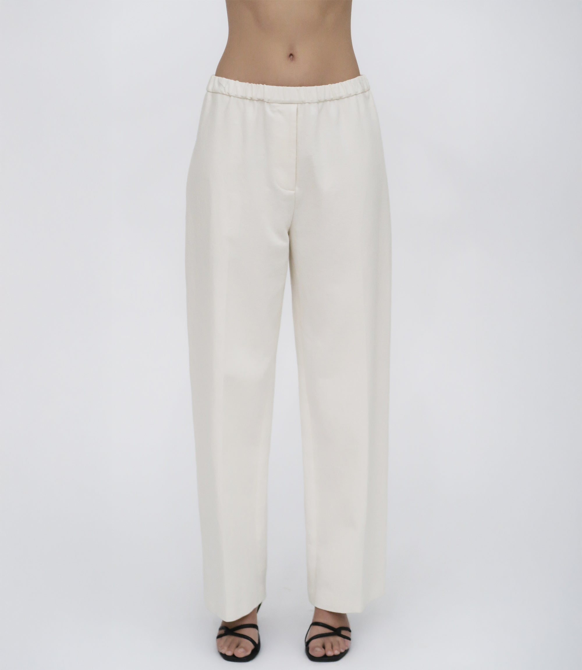 The Relaxed Pull-On Pant is a Pre-Fall 25 favorite, marrying the refined detail of tailored menswear with the ease of an elasticized waist. Designed with a straight-leg silhouette, the breathable Cotton Linen Piqué fabric imparts a subtle drape to the style, making it optimal for warm-weather wear.