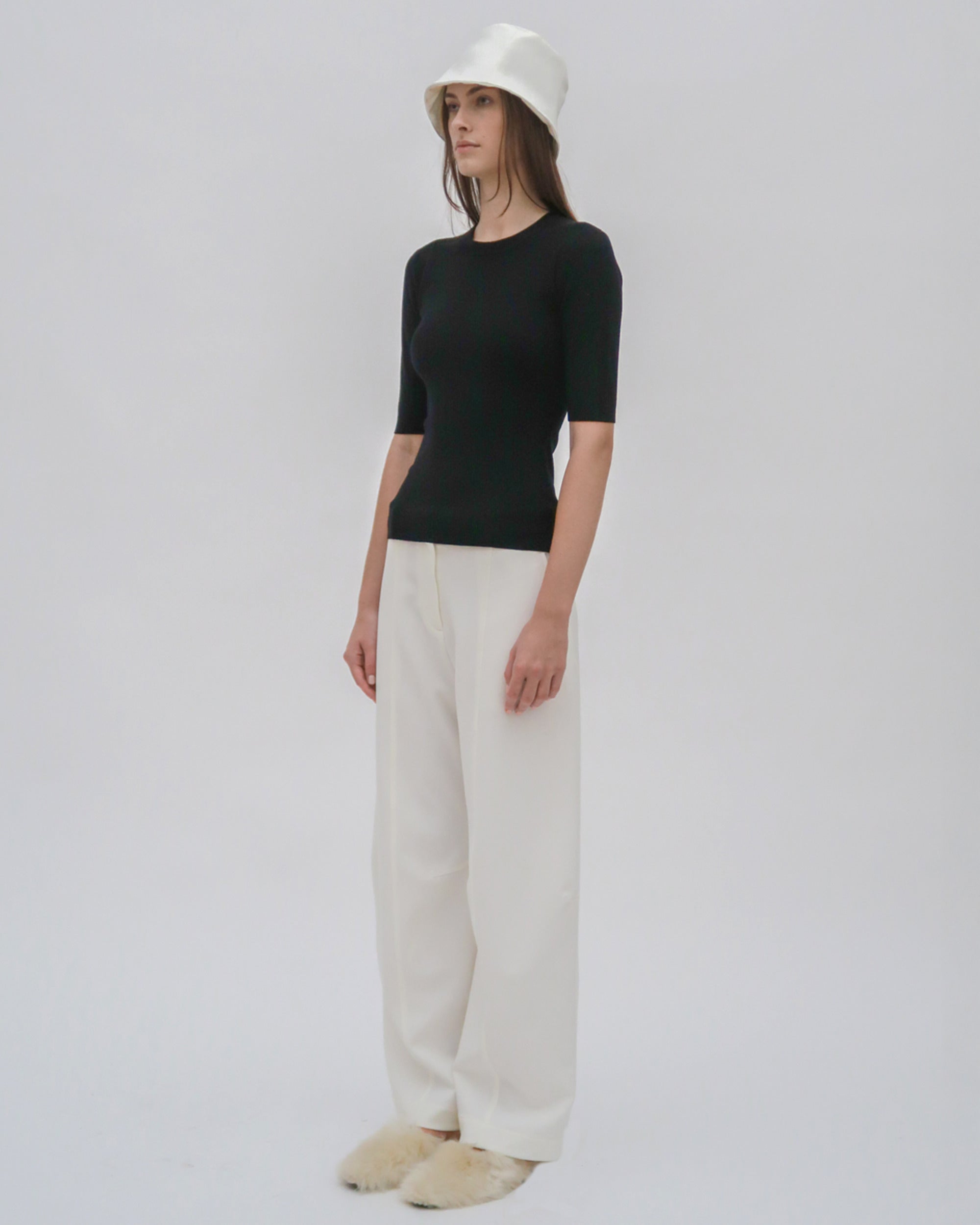 Knit with plenty of stretch but a bit of structure, Rosetta Getty’s Stretch Merino has the qualities of a soft wool but with a crisp hand—it smoothly and seamlessly adapts to the wearer’s body.