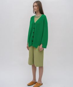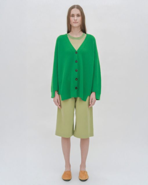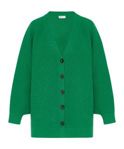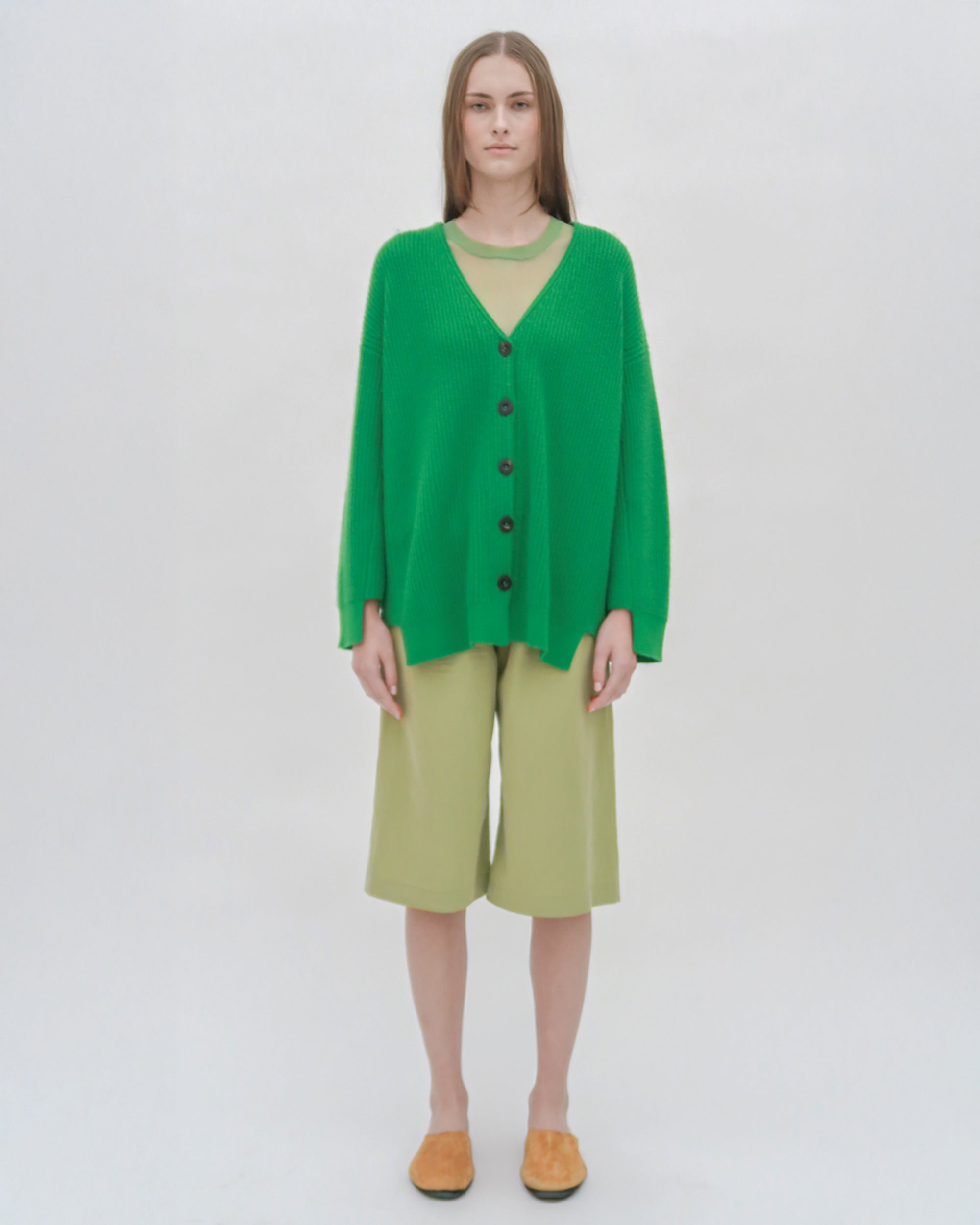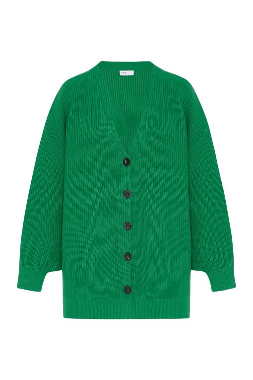 Knit of soft Mercerized Wool Cashmere, this staple cardigan silhouette is designed with an oversized fit and directional ribbing for structure and shape. Wing sleeves lend interest to the style, which features tonal buttons for a refined finish.