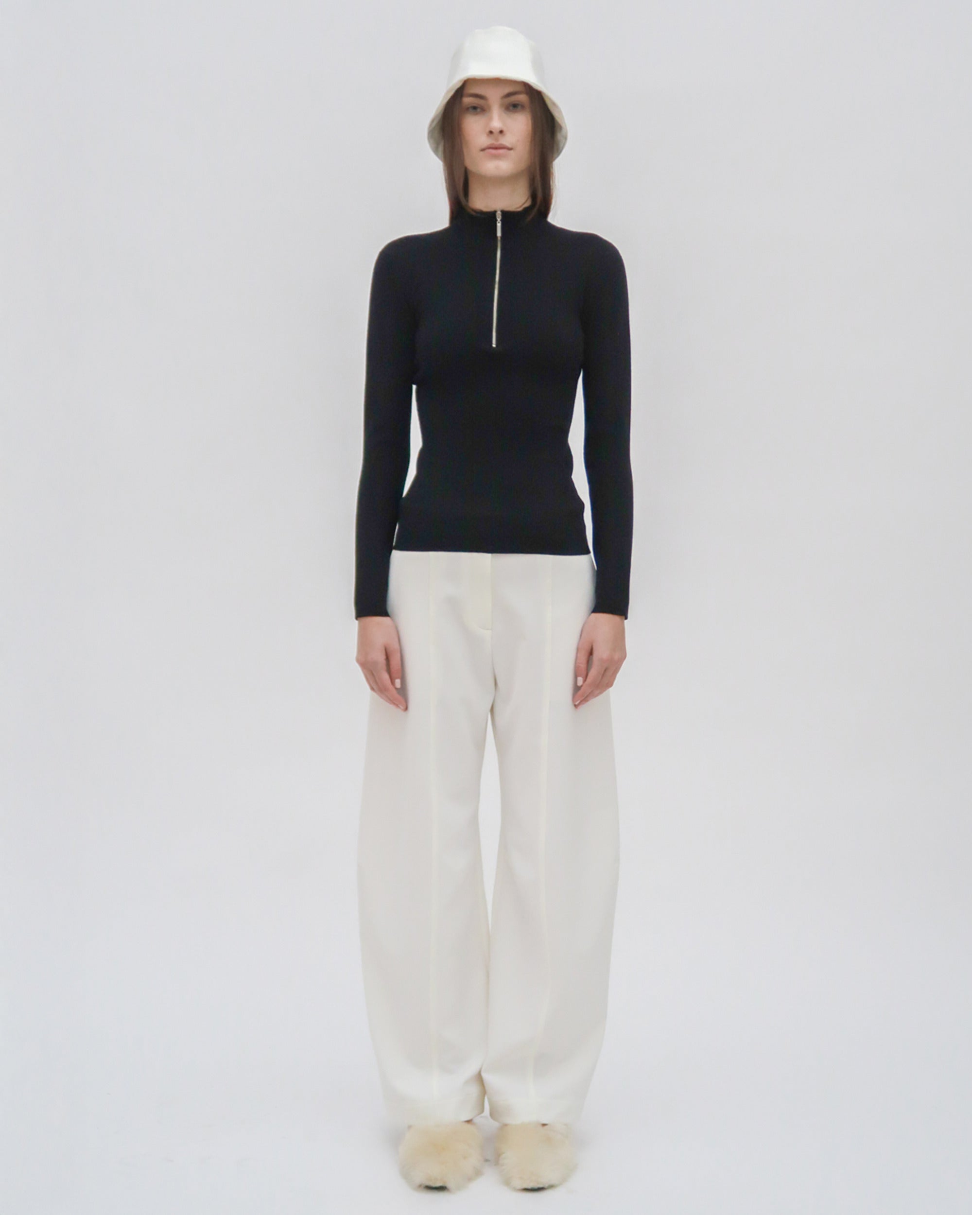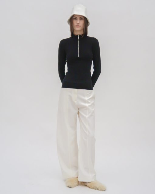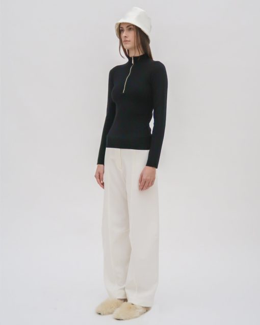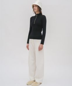 Rosetta Getty Women’s Ribbed Zip Up Turtleneck Sweater | Black