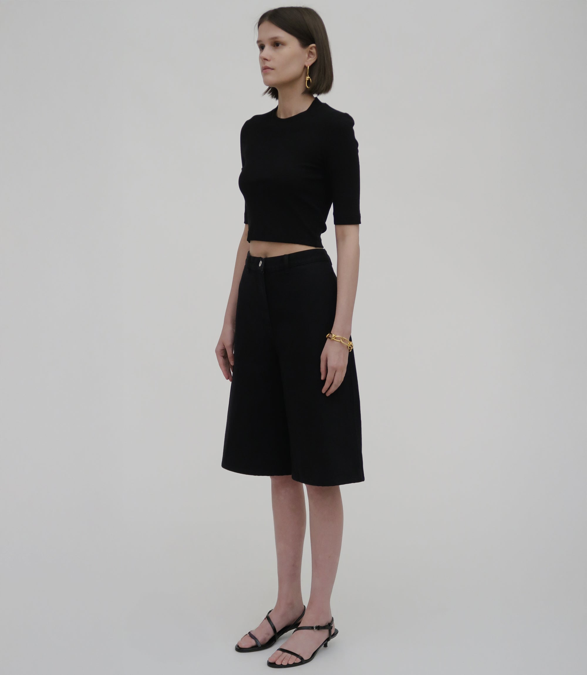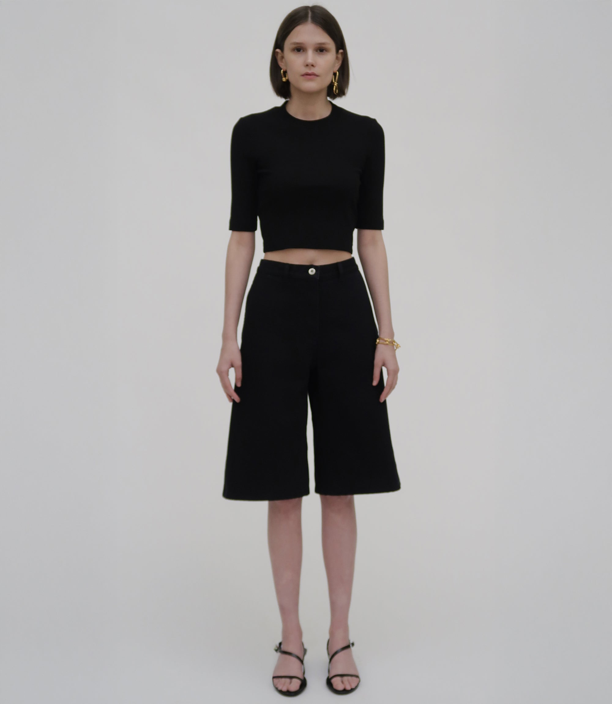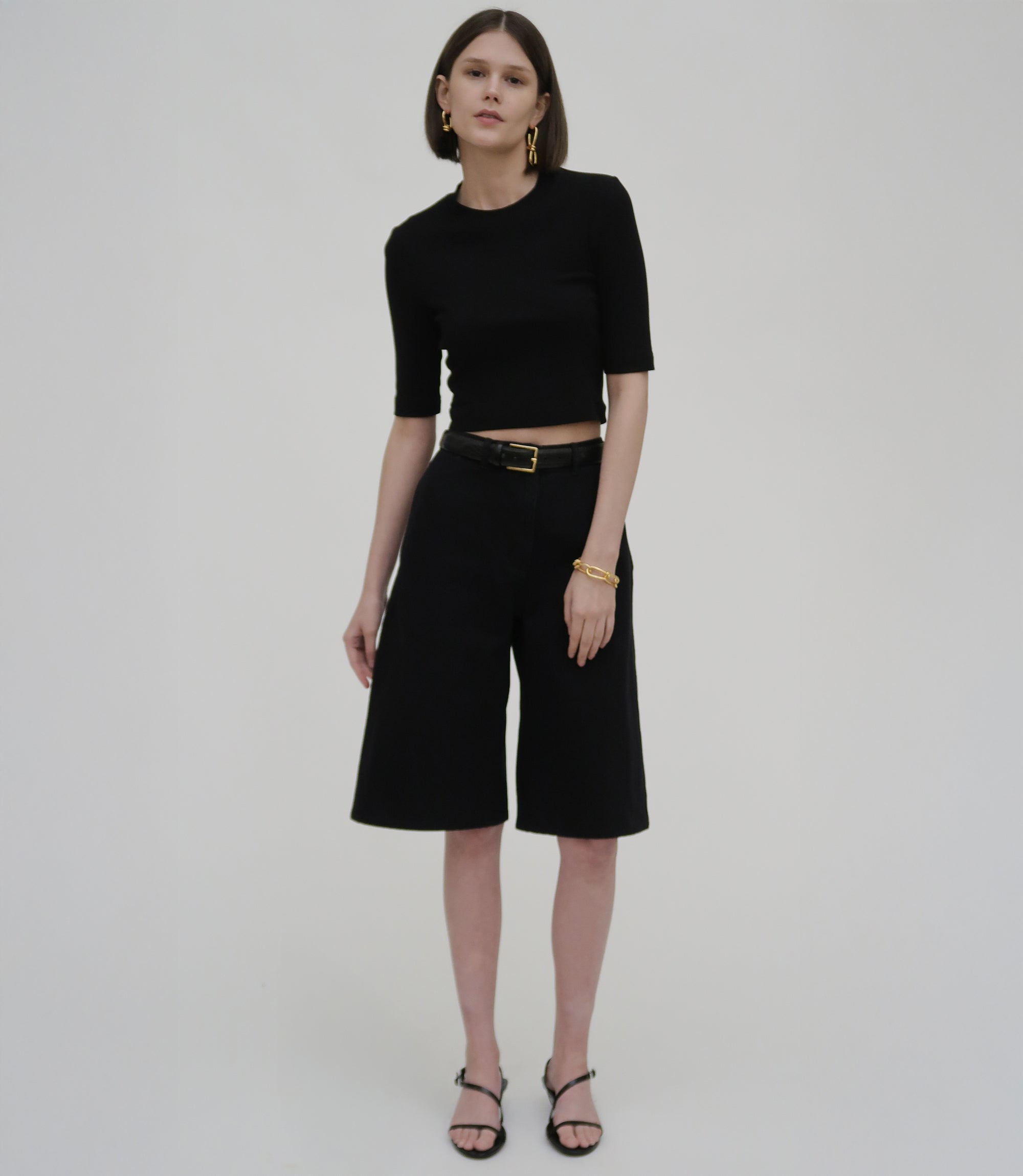 Rosetta Getty’s sought-after Mercerized Cotton Rib Jersey features a double mercerization process that gives the soft Japanese fabric a beautiful and unique feel that is both clean and fluid.