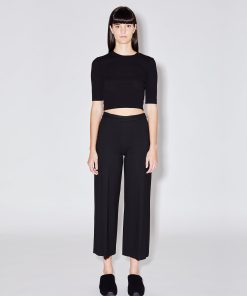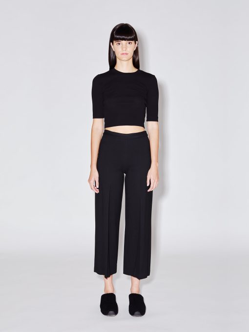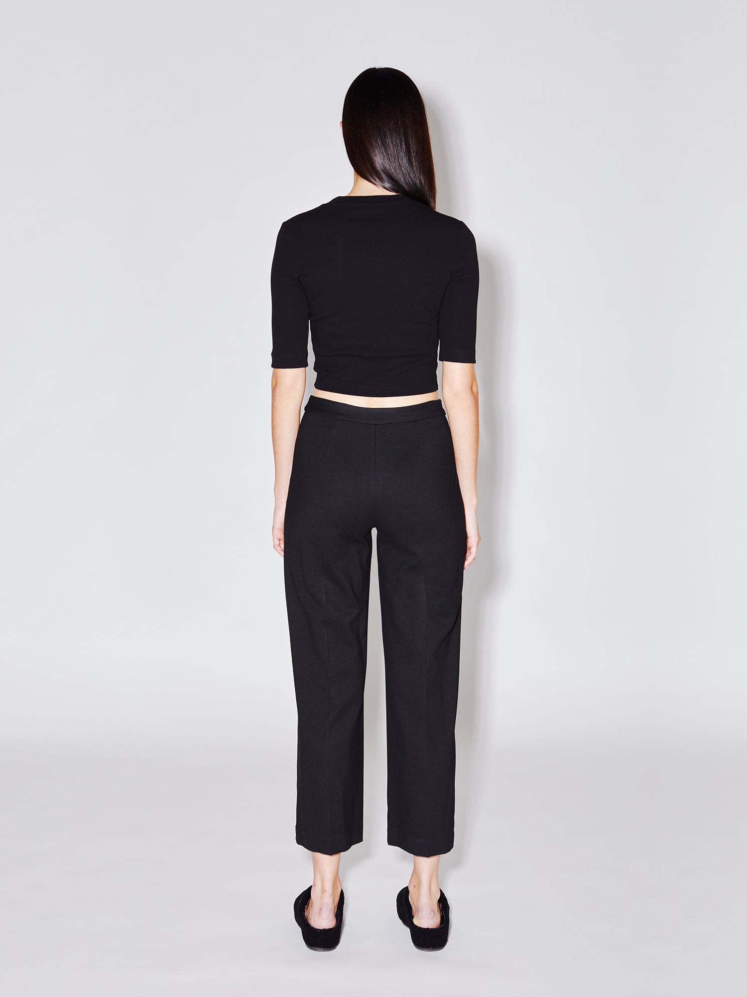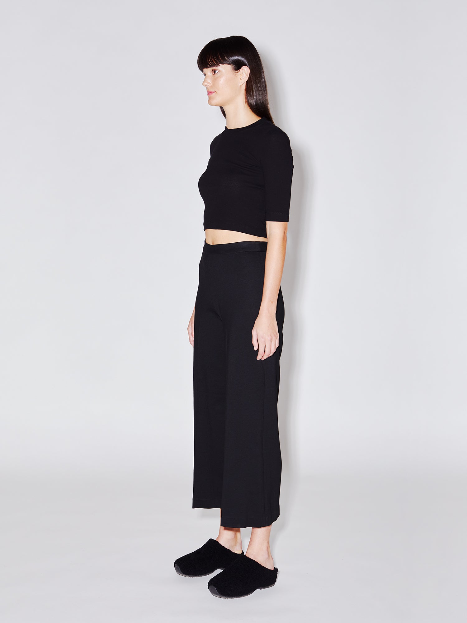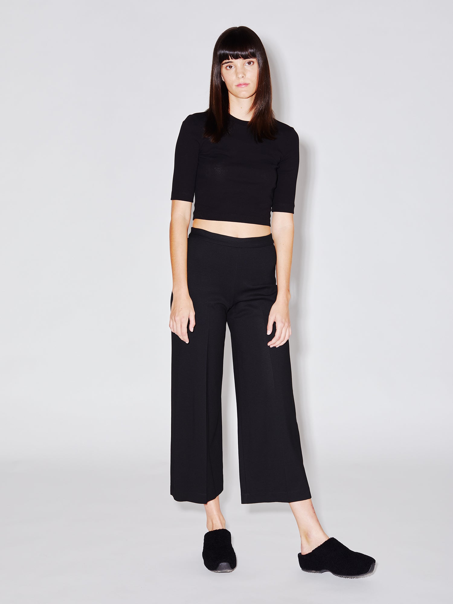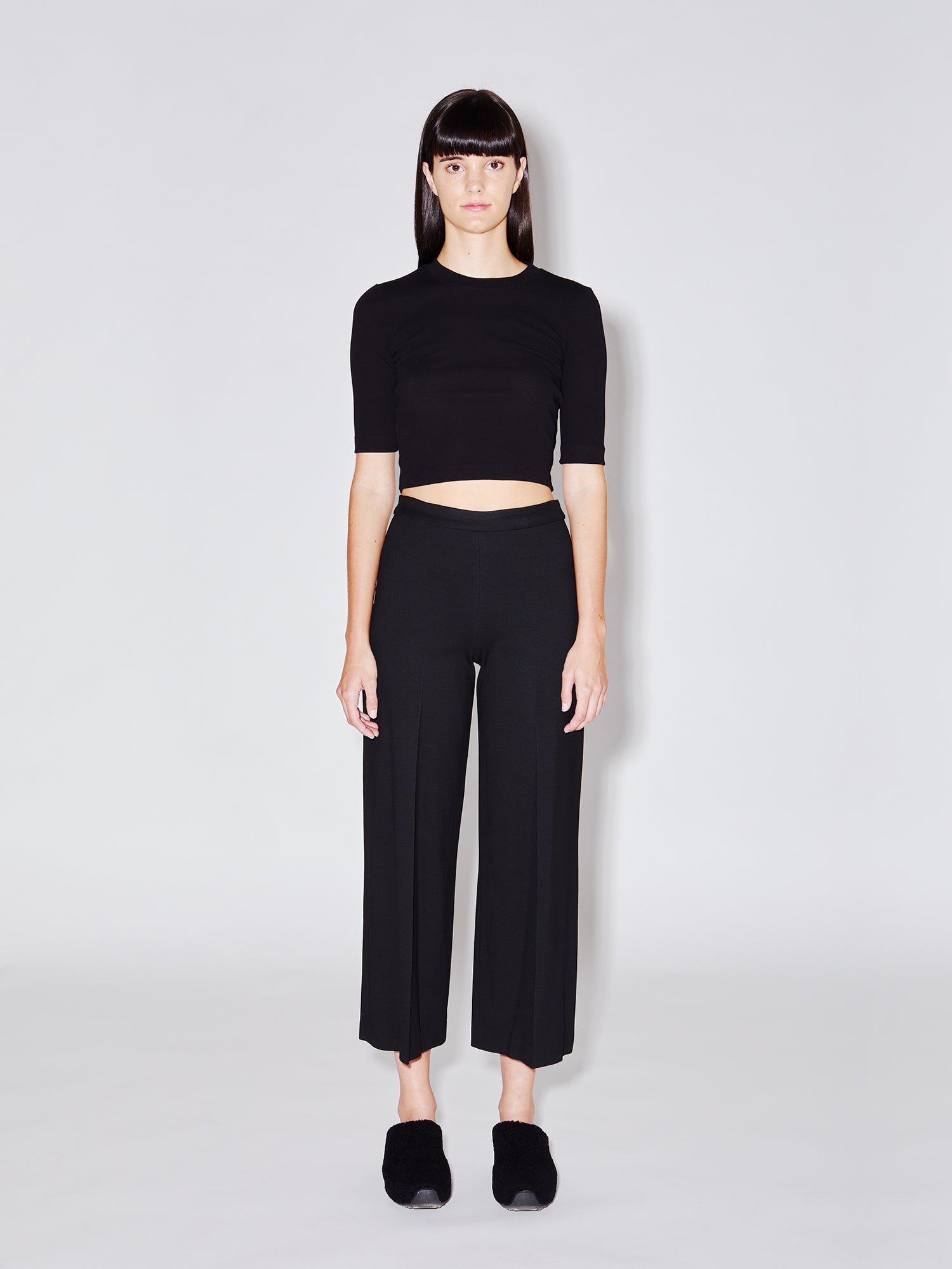 Hitting just above the hip, the slightly cropped shape of this essential crewneck tee offers perfect pairing with high-waisted bottoms. Cut from our exceptionally soft Mercerized Cotton Jersey, it gently envelops the body, flattering and enhancing the silhouette.