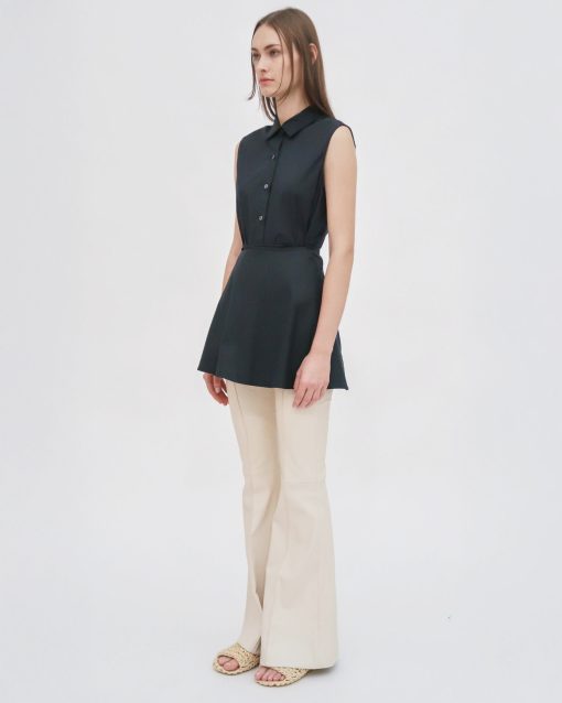Apron silhouettes are one of the elements that have come to define the Rosetta Getty brand. Spring 25’s asymmetric style has a shorter length, offering versatile wear as a tunic, minidress, or longer top. Crafted of brand staple Stretch Cotton Poplin, it can be worn tied at the hip or left draped open for fluid movement.