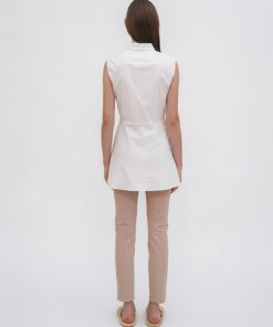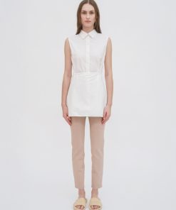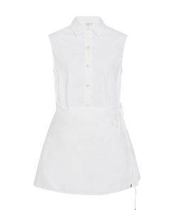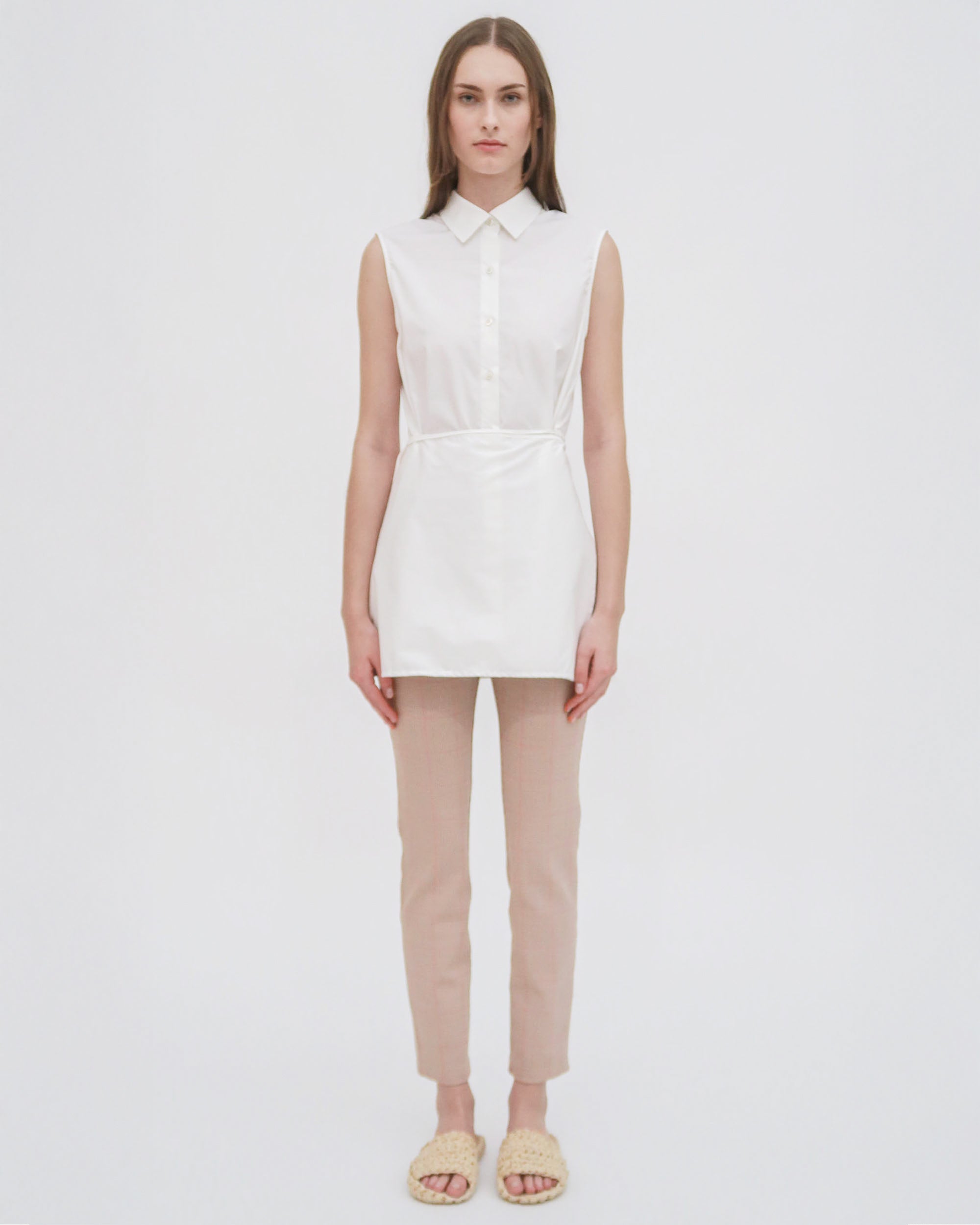Apron silhouettes are one of the elements that have come to define the Rosetta Getty brand. Spring 25’s asymmetric style has a shorter length, offering versatile wear as a tunic, minidress, or longer top. Crafted of brand staple Stretch Cotton Poplin, it can be worn tied at the hip or left draped open for fluid movement.