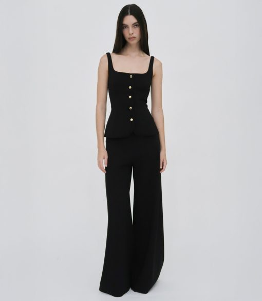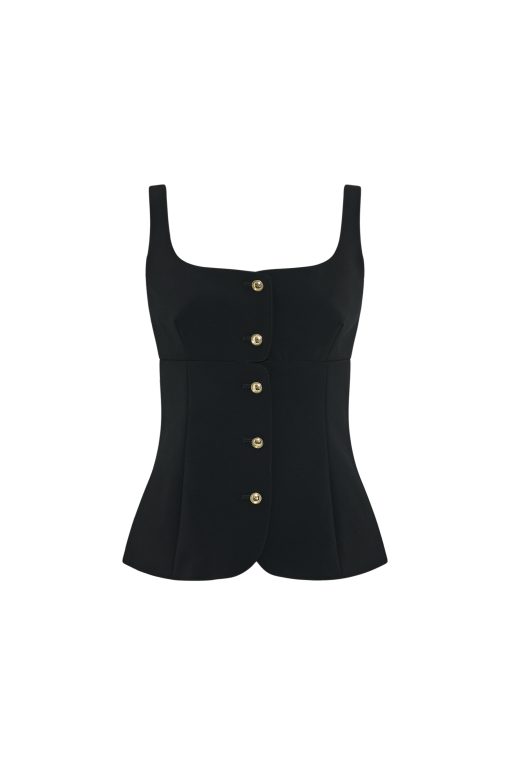 Rosetta Getty Women’s Square Neck Button Front Top | Black
