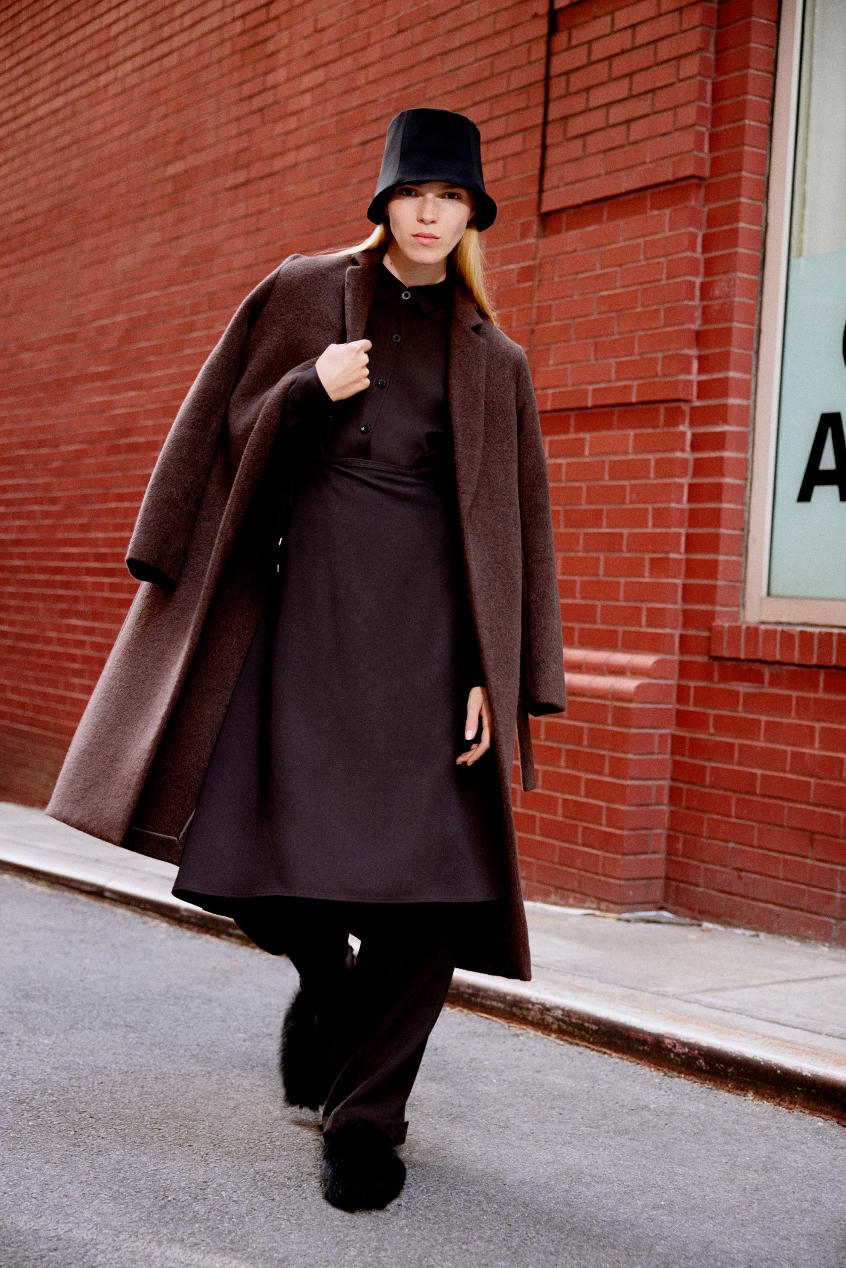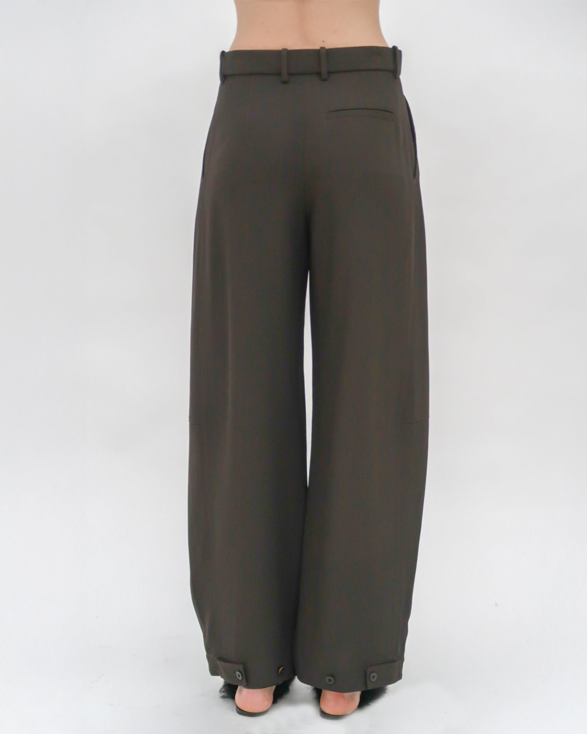Resort 25’s key pant silhouette, the Straight Taper Tab Pant, features in Viscose Twill—a crisp yet light suiting fabric. Designed with refined tailored details and shaped with tiny darts at each knee, the style has a flattering fit from the waist to the button-tab hem, allowing transitional wear between a classic slack and harem-like trouser.
