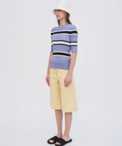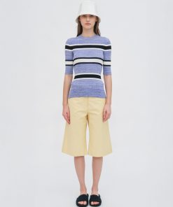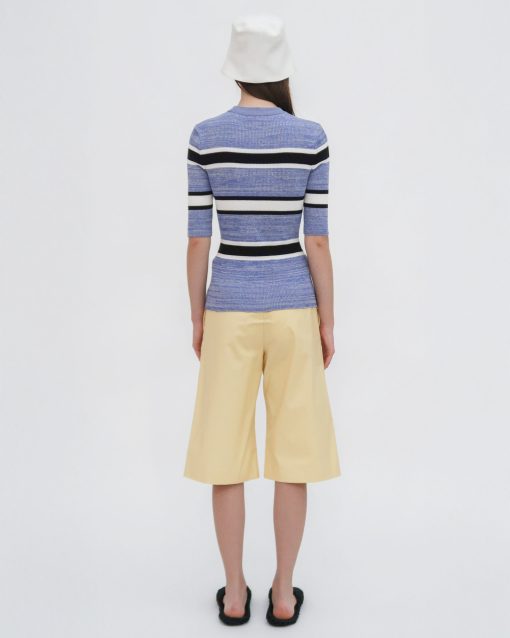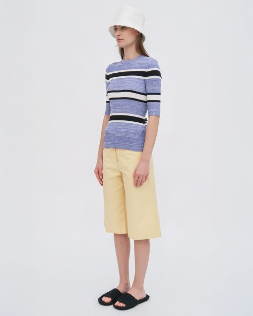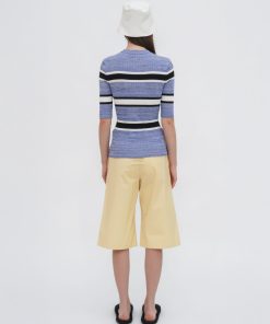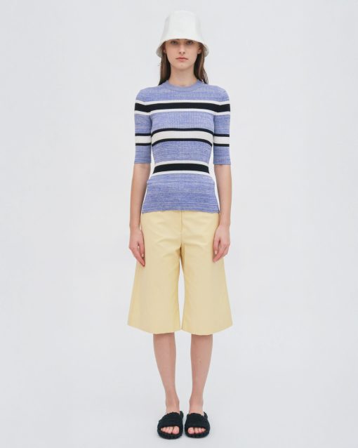 Rosetta Getty Women’s Striped Cropped Sleeve Sweater | Blue Melange