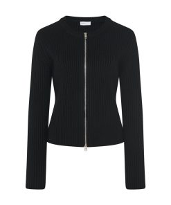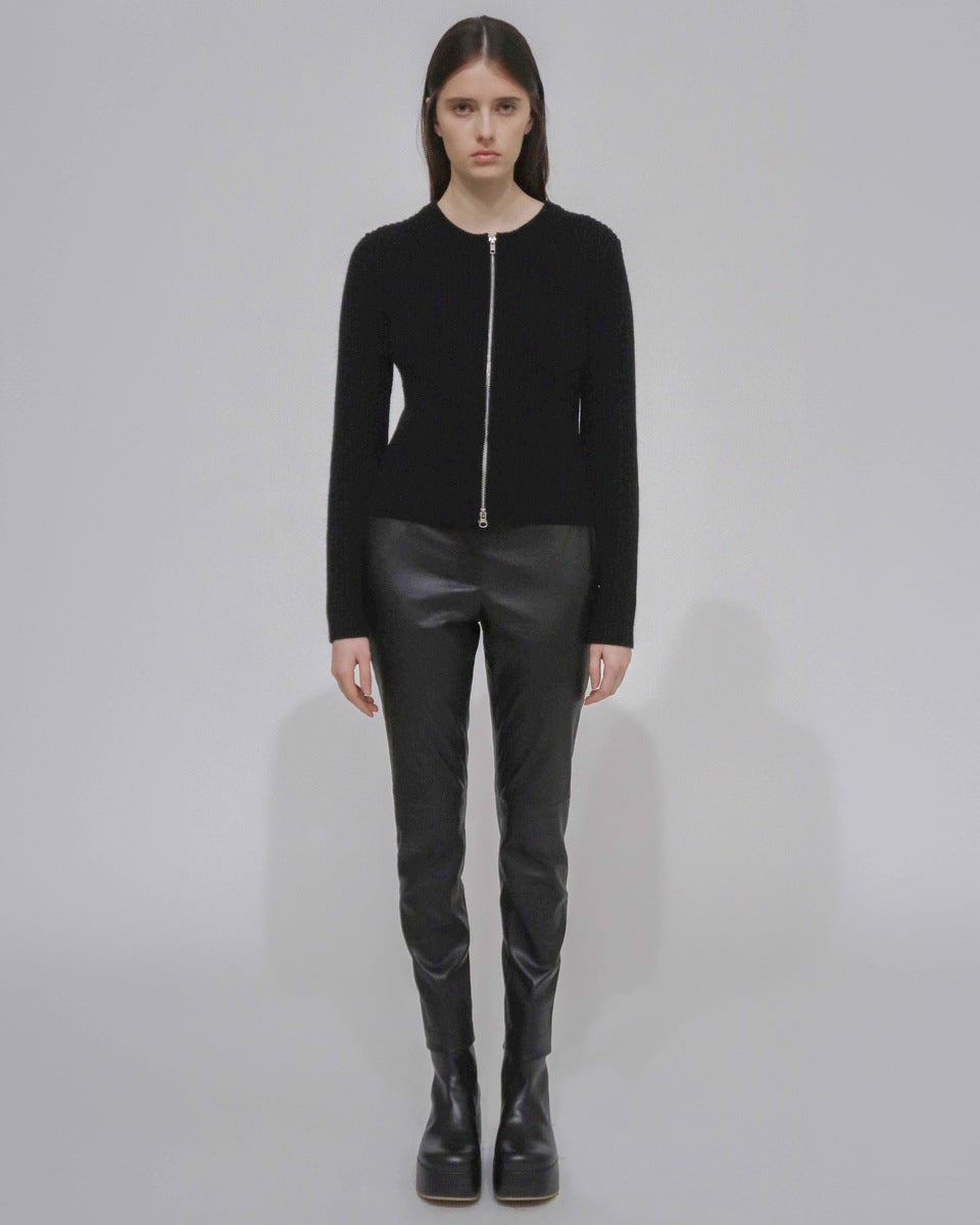Designed with allover ribbing for a close fit, the Zip-Up Cardigan is knitted with lofty Mercerized Wool Cashmere. The quintessential crewneck silhouette is reinvented with a bold silvertone two-way zip closure, lending a utilitarian finish to the piece.